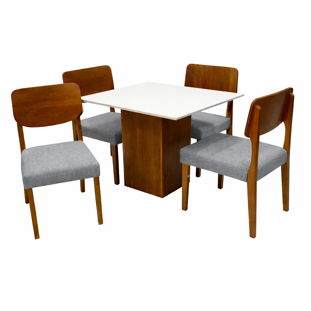 Mesa de Jantar Dakota 90x90cm Sem Vidro e 4 Cadeiras Barcelona em Linho Madeira Cel Móveis