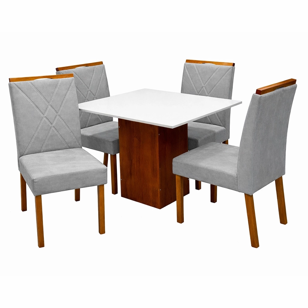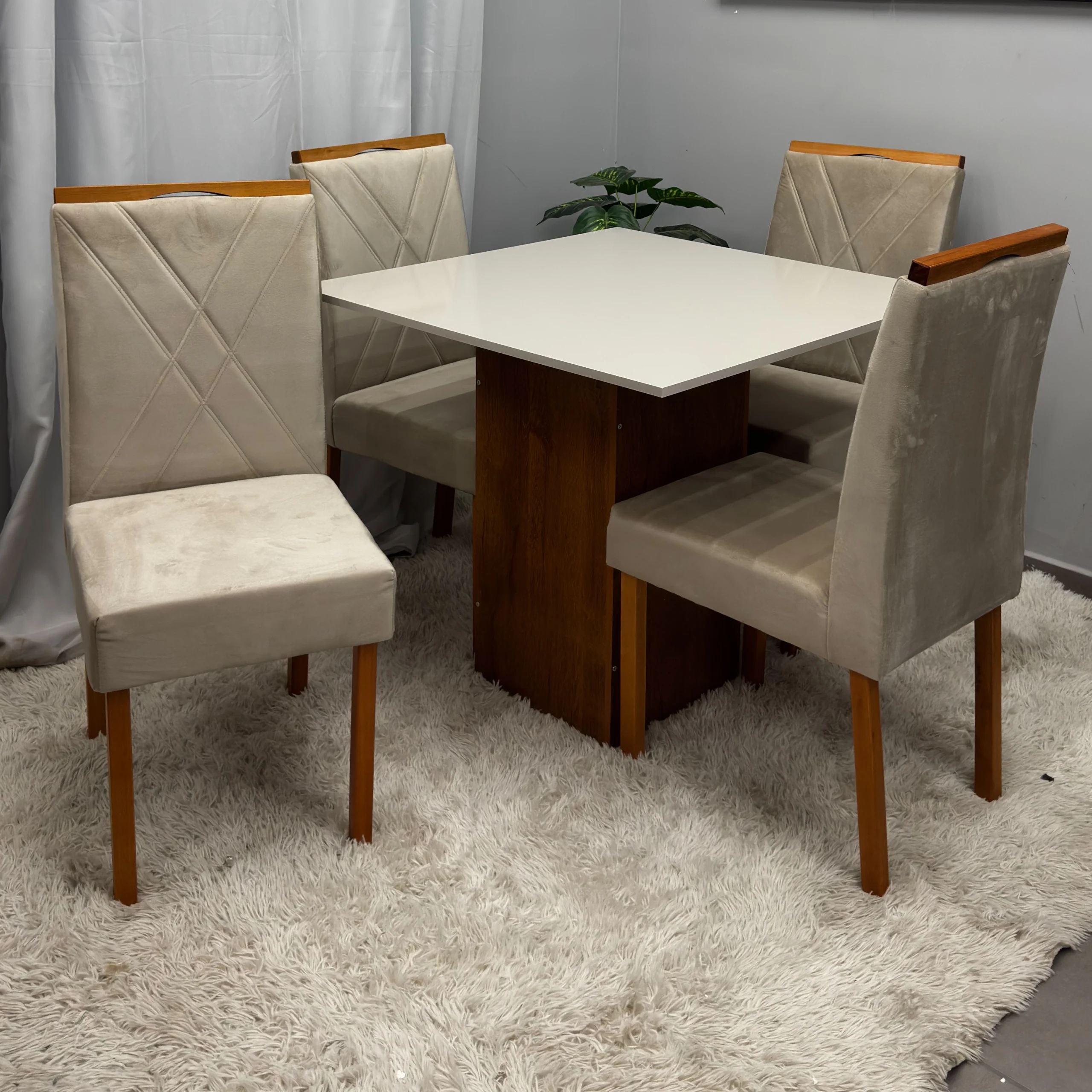 Mesa de Jantar Dakota 90x90cm SEM Vidro e 4 Cadeiras California em Veludo Estofadas Cel Móveis