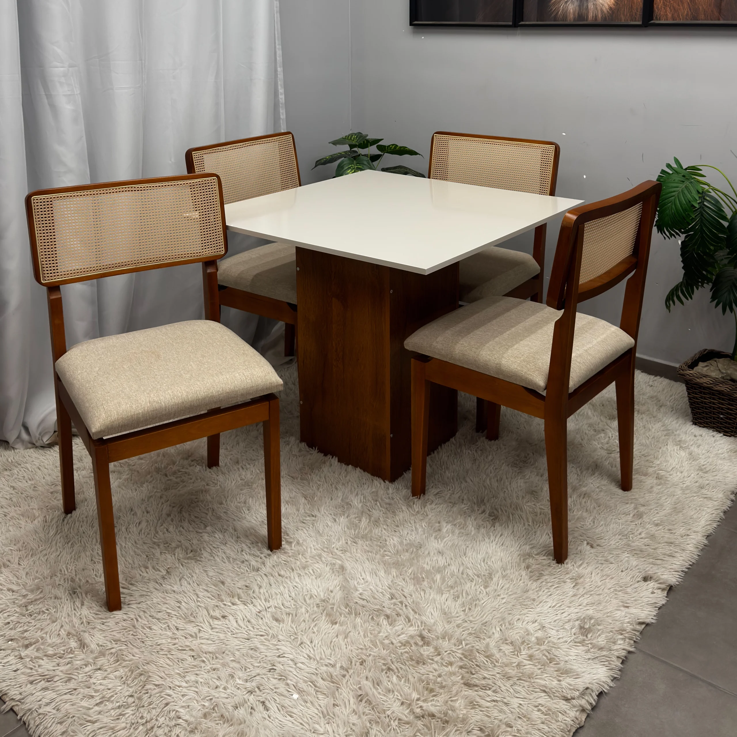 Mesa de Jantar Dakota 90x90cm Sem Vidro e 4 Cadeiras Canada em Linho Madeira Cel Móveis