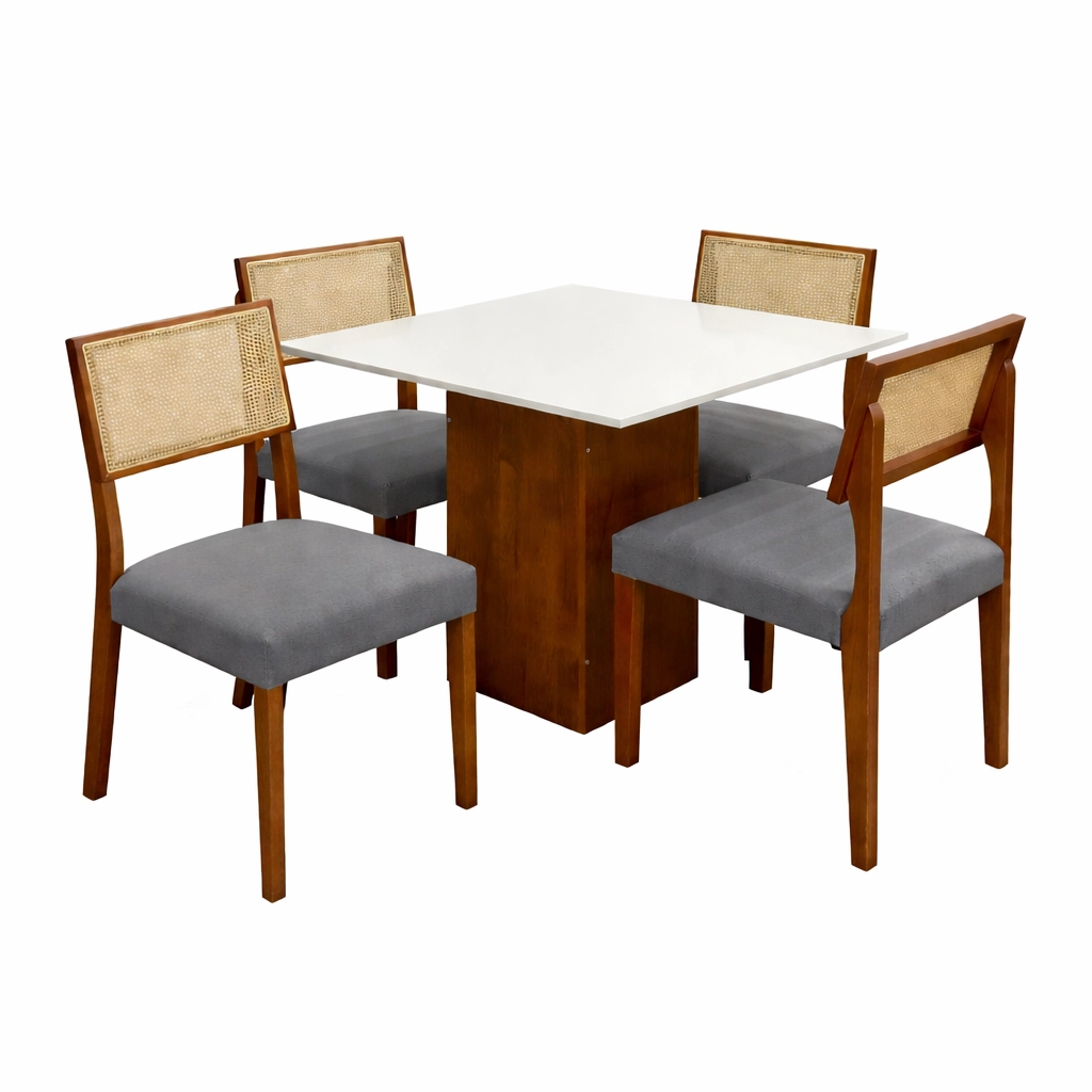 Mesa de Jantar Dakota 90x90cm SEM Vidro e 4 Cadeiras Grecia em Linho Madeira Cel Móveis