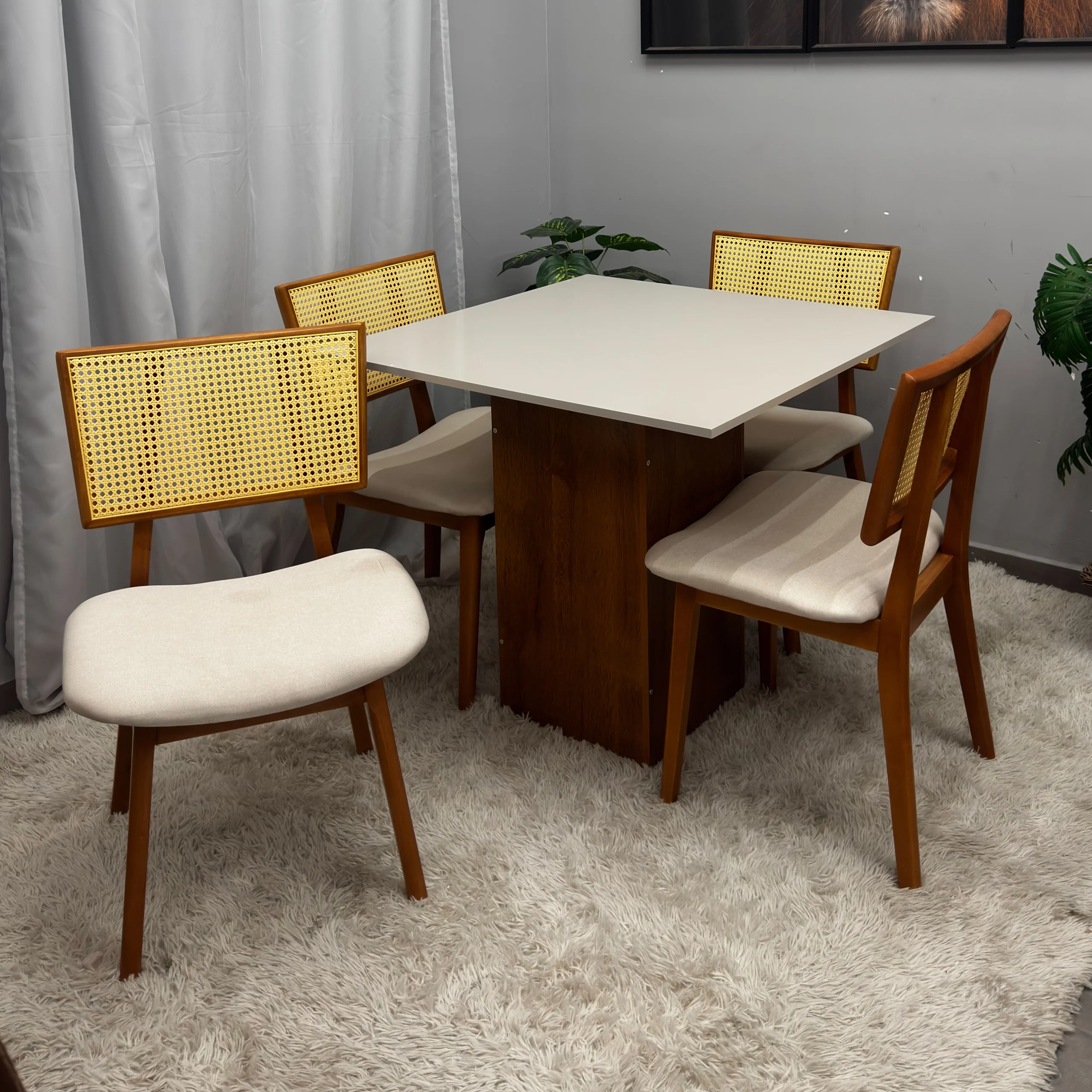 Mesa de Jantar Dakota 90x90cm Sem Vidro e 4 Cadeiras Livia em Linho Madeira Cel Móveis