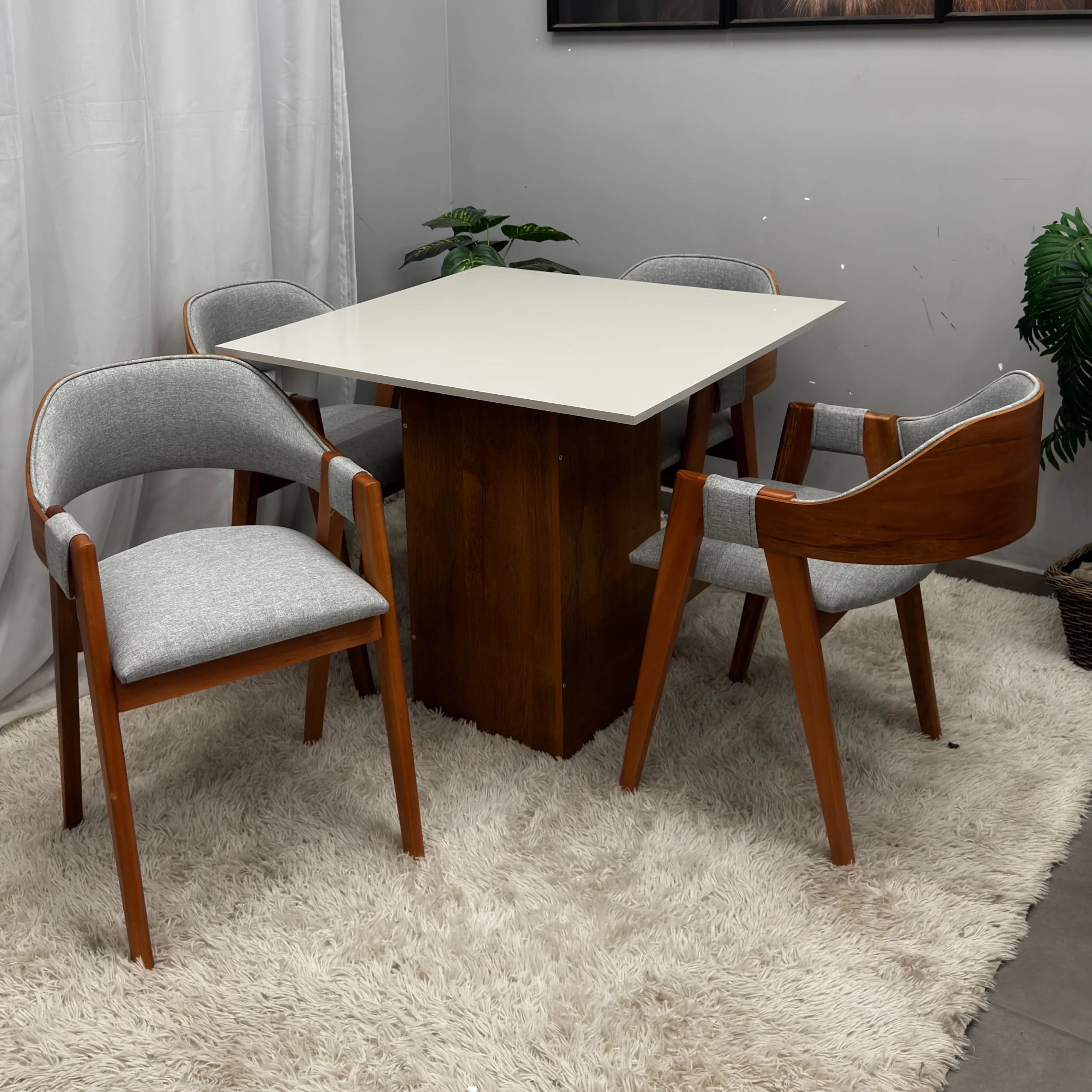 Mesa de Jantar Dakota 90x90cm SEM Vidro e 4 Cadeiras Perola em Linho Madeira Cel Móveis