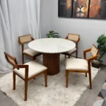 | Modelo | Mesa de Jantar Dara 110cm Redonda com Vidro e 4 Cadeiras Berlim HR em Linho |