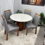 Seja o primeiro a avaliar “Mesa de Jantar Dara 110cm Redonda com Vidro e 4 Cadeiras California em Veludo Estofadas Lj Móveis” Cancelar resposta