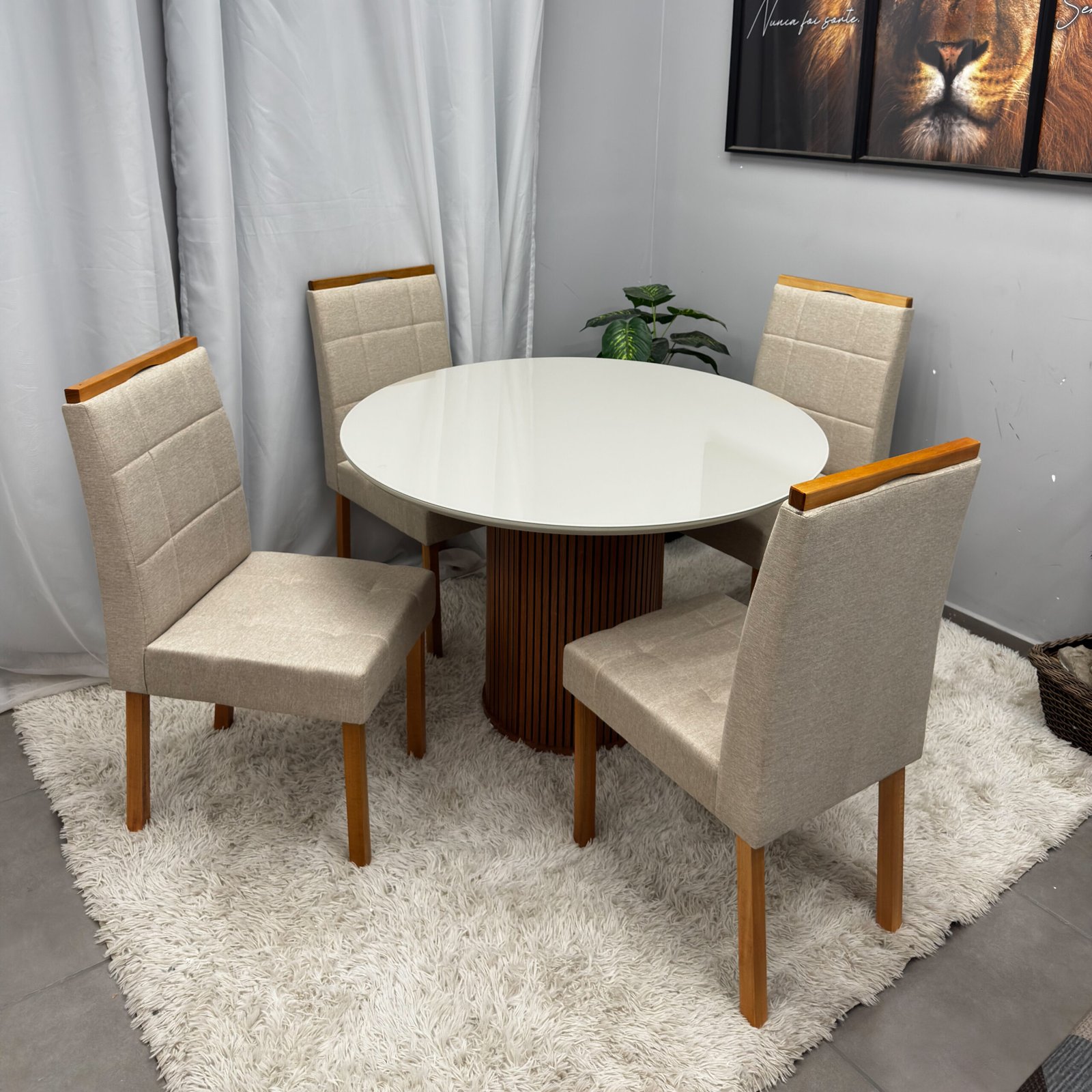 | Modelo | Mesa de Jantar Dara 110cm Redonda com Vidro e 4 Cadeiras Giulia em Veludo |