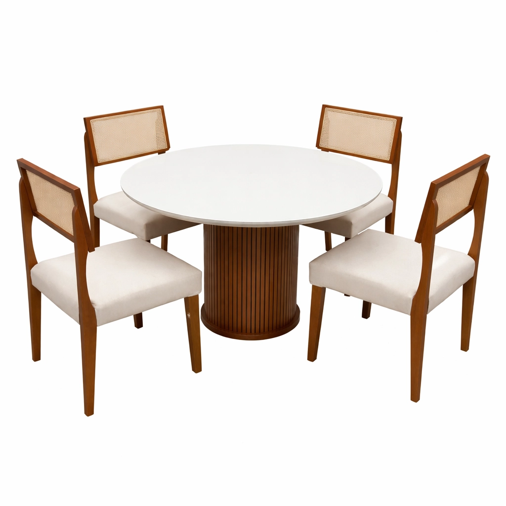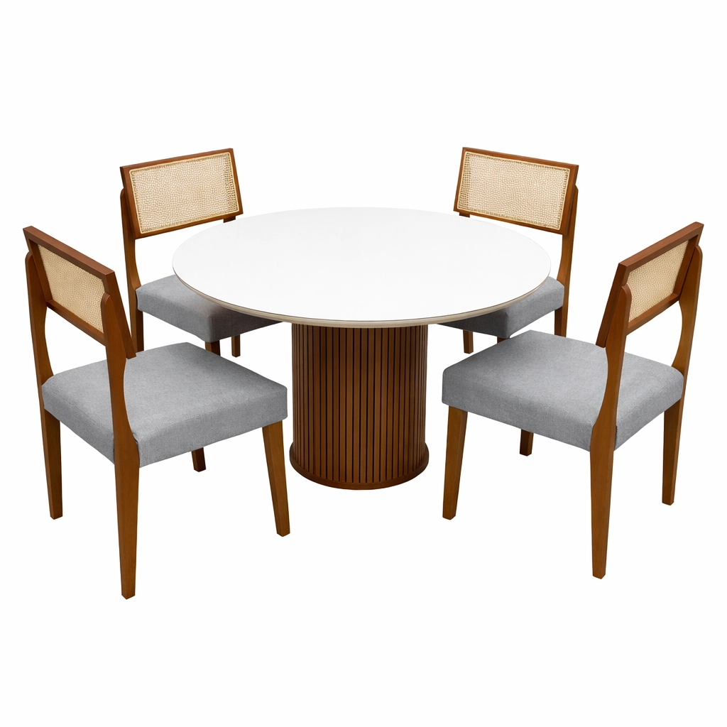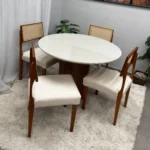 | Modelo | Mesa de Jantar Dara 110cm Redonda com Vidro e 4 Cadeiras Grecia em Linho |