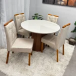 | Modelo | Mesa de Jantar Dara 110cm Redonda com Vidro e 4 Cadeiras Jasmim em Linho |
