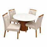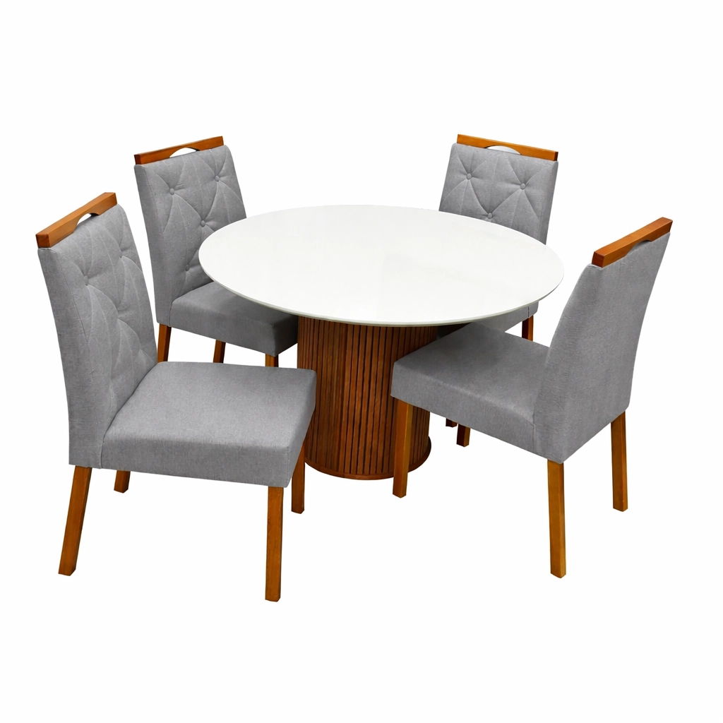 | Modelo | Mesa de Jantar Dara 110cm Redonda com Vidro e 4 Cadeiras Jasmim em Veludo |