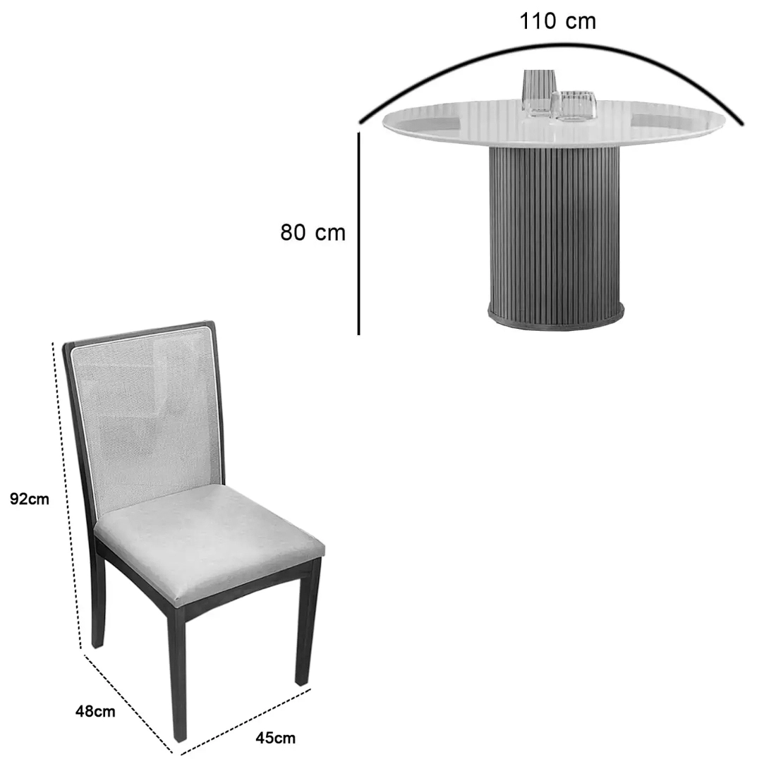 | Modelo | Mesa de Jantar Dara 110cm Redonda com Vidro e 4 Cadeiras Lara Kappesberg em Linho |
