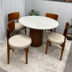 | Modelo | Mesa de Jantar Dara 110cm Redonda com Vidro e 4 Cadeiras Maldivas em Linho |