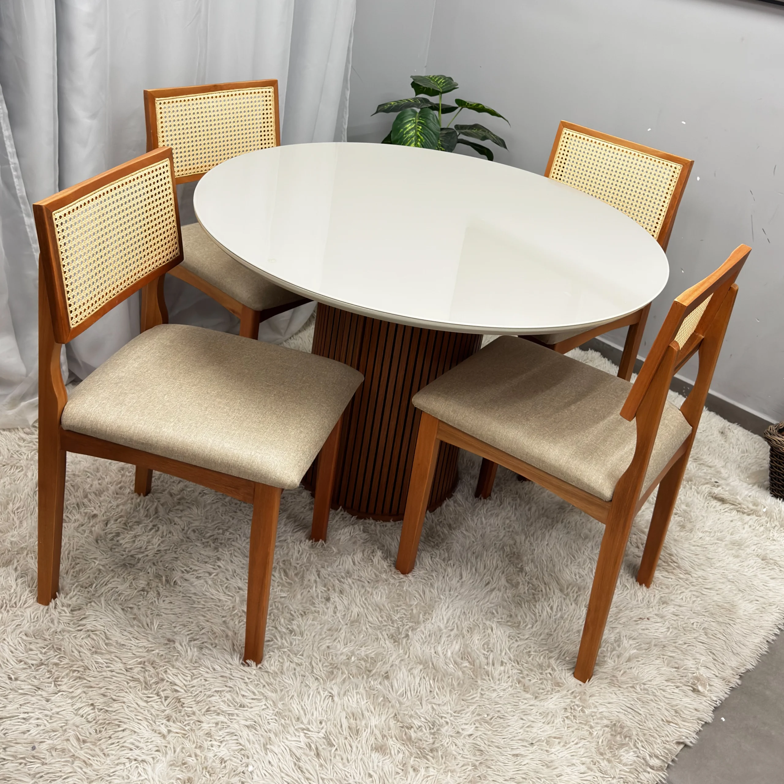 Mesa de Jantar Dara 110cm Redonda com Vidro e 4 Cadeiras Monalisa em Linho Madeira LJ Móveis