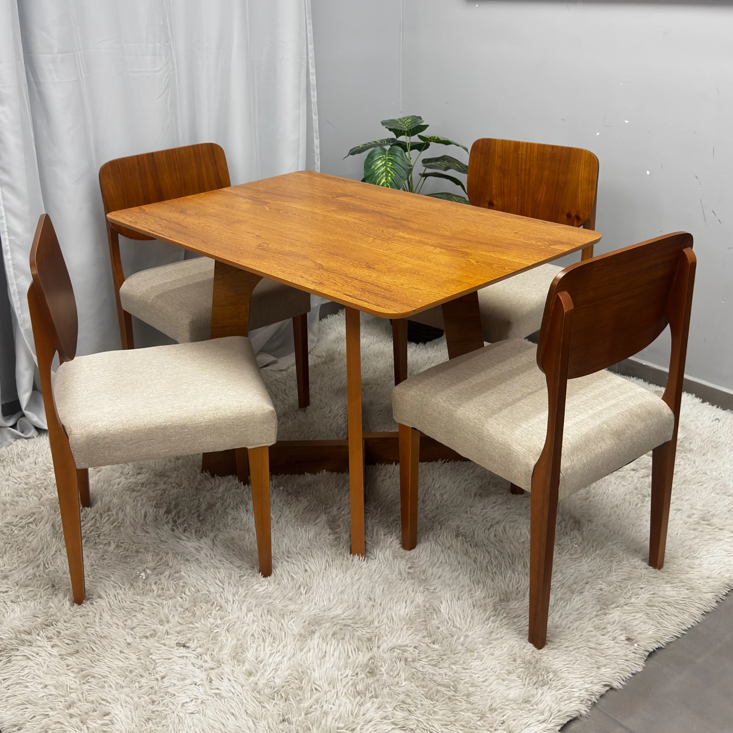 A Mesa de Jantar Dubai Flex 120x80cm SEM Vidro e 4 Cadeiras Barcelona em Linho Madeira Cel Móveis combina praticidade e elegância para otimizar seu ambiente com um toque moderno. Com um tampo amadeirado resistente, ela é acompanhada por 4 cadeiras, que garantem o máximo conforto. É o conjunto ideal para quem busca durabilidade e um design sofisticado para reunir a família.