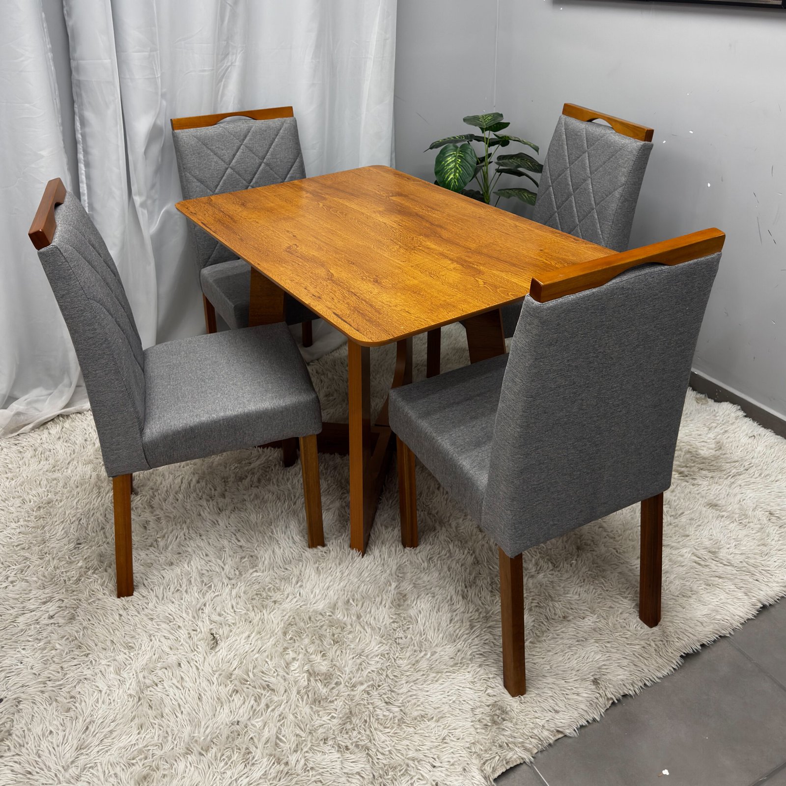 Mesa de Jantar Dubai Flex 120x80cm Sem Vidro e 4 Cadeiras California em Veludo |