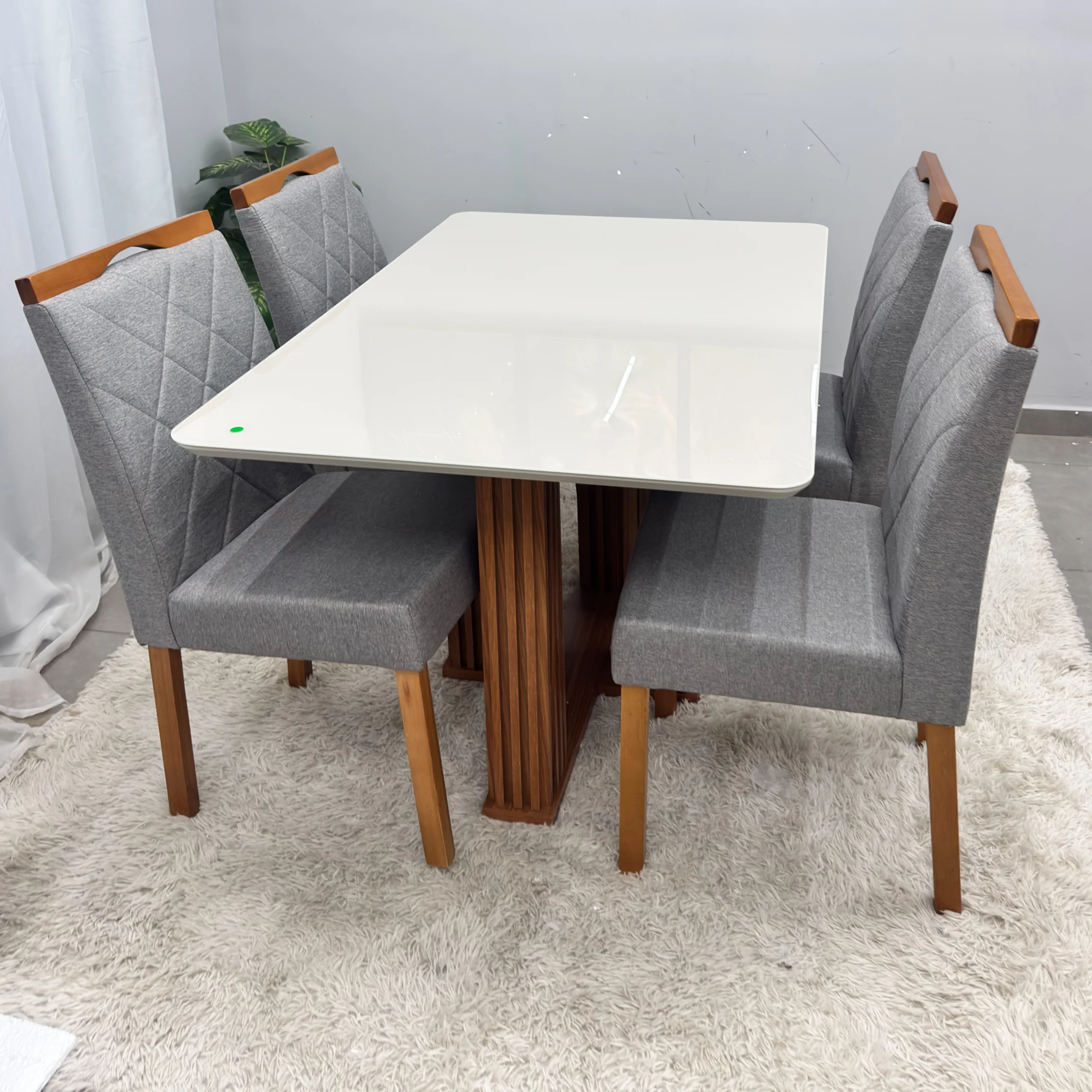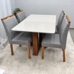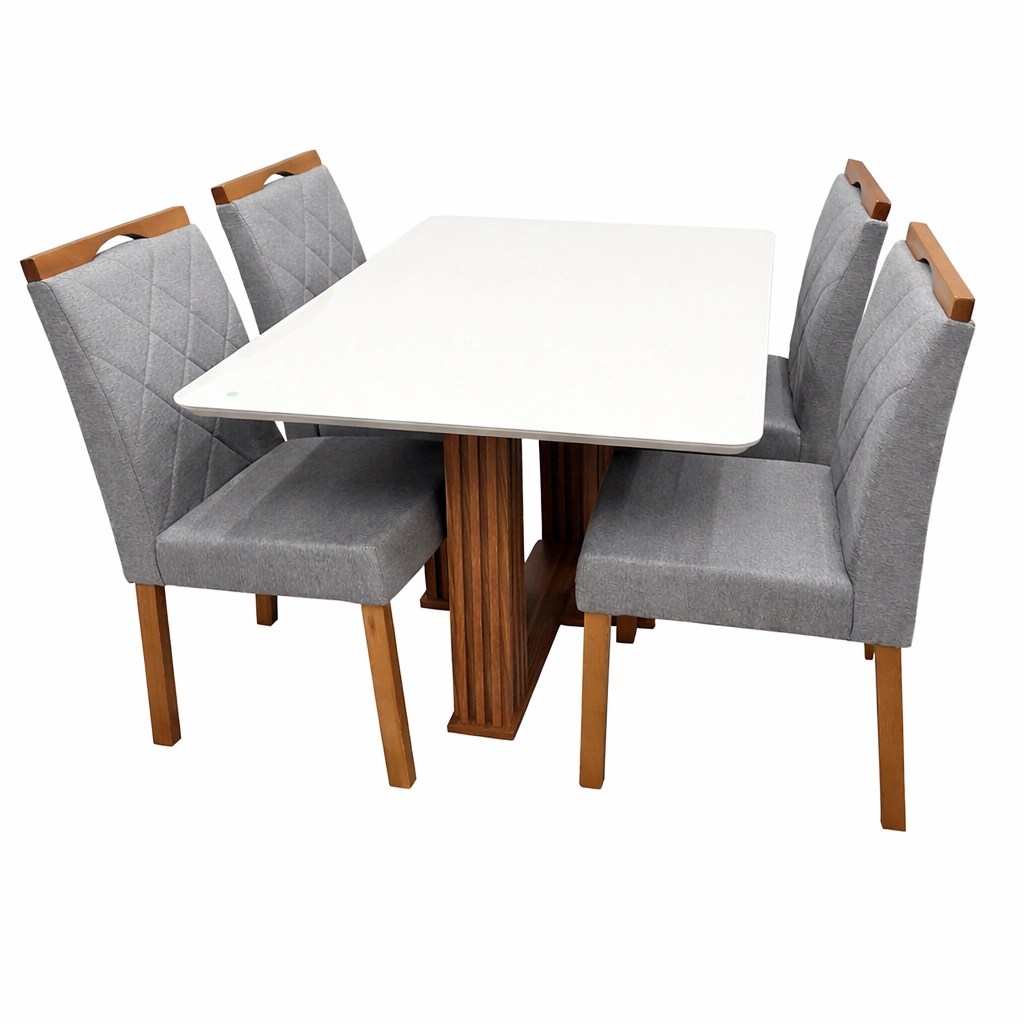 | Modelo | Mesa de Jantar Florença 120x80cm com Vidro e 4 Cadeiras California em Veludo |