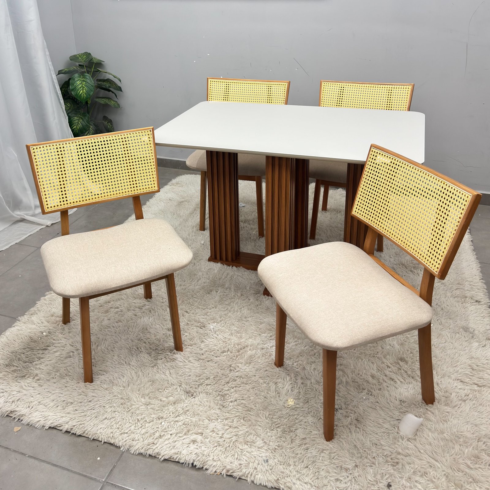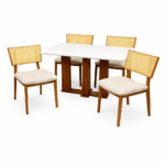 | Modelo | Mesa de Jantar Florença 120x80cm com Vidro e 4 Cadeiras Diamante em Linho |