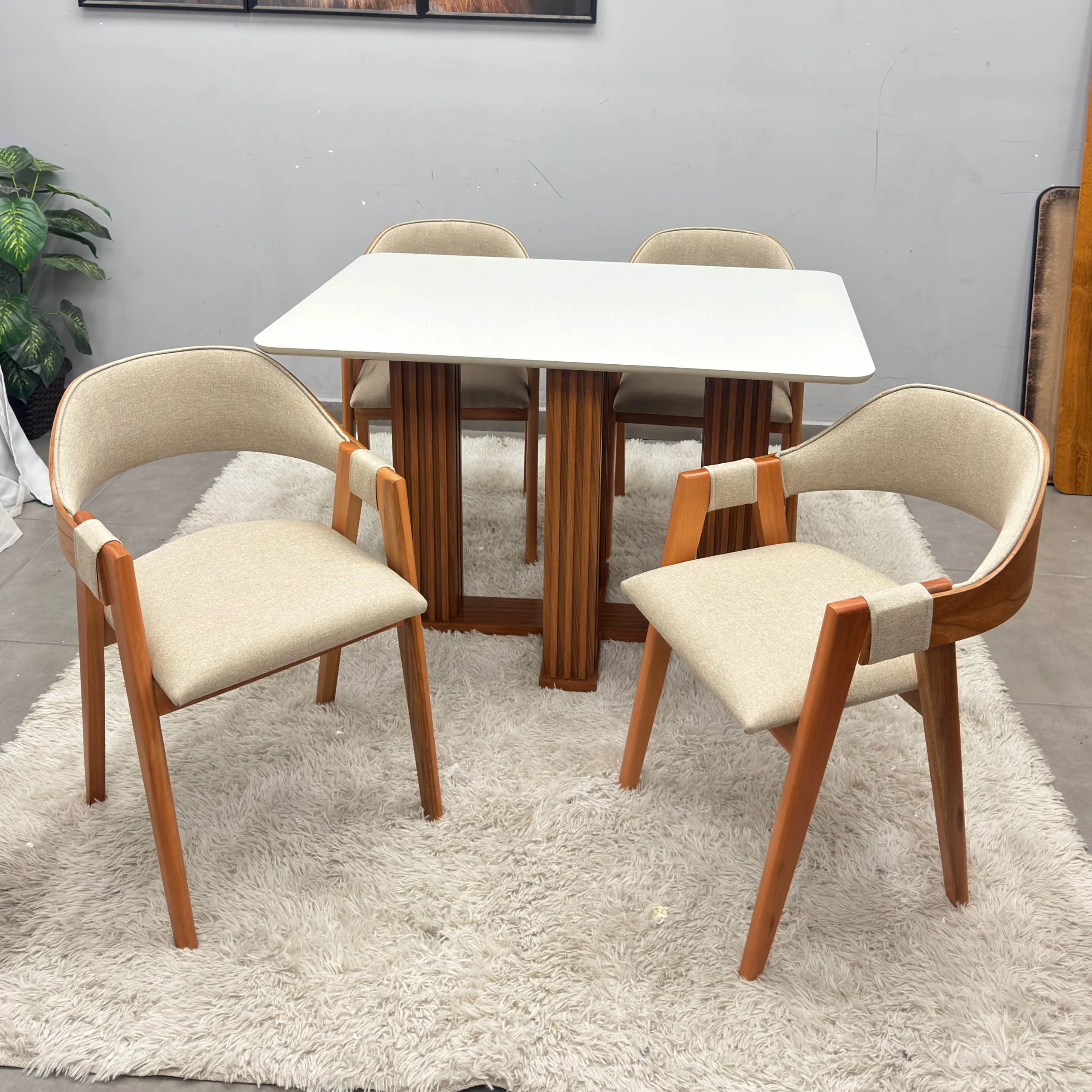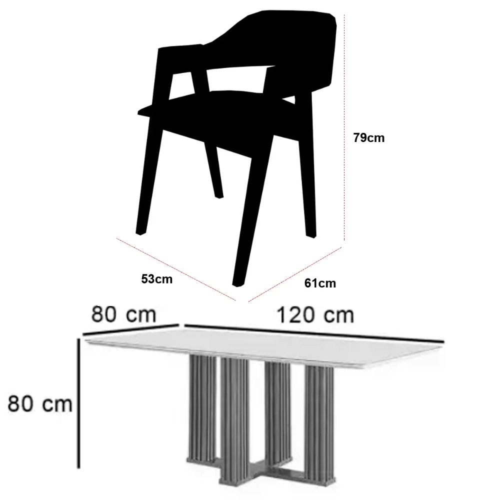 | Modelo | Mesa de Jantar Florença 120x80cm com Vidro e 4 Cadeiras Perola em Linho |