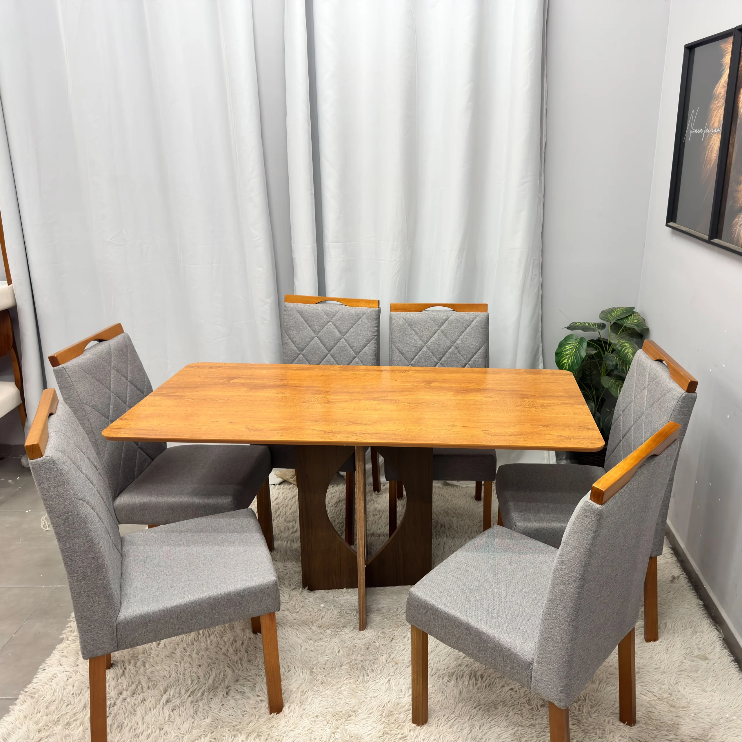Mesa de Jantar Madrid Dubai 160x80cm SEM Vidro e 6 Cadeiras California em Linho Madeira Minas Plac