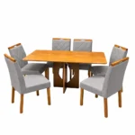 Mesa de Jantar Madrid Dubai 160x80cm Sem Vidro e 6 Cadeiras California em Linho |