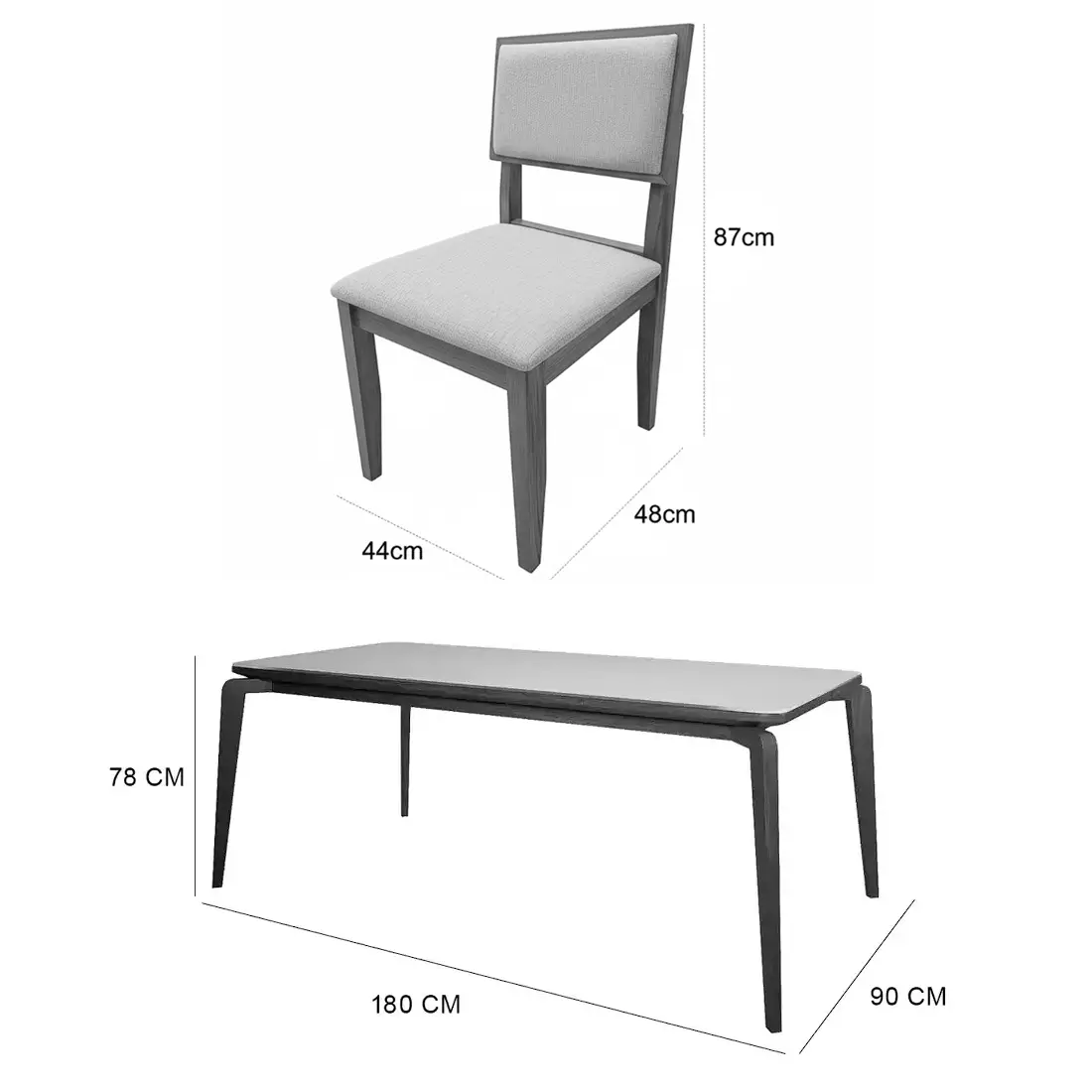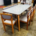 Seja o primeiro a avaliar “Mesa de Jantar Veneza 180x90cm com 8 Cadeiras Santorini Estofadas Madeira Tecido Linho Minas Plac” Cancelar resposta