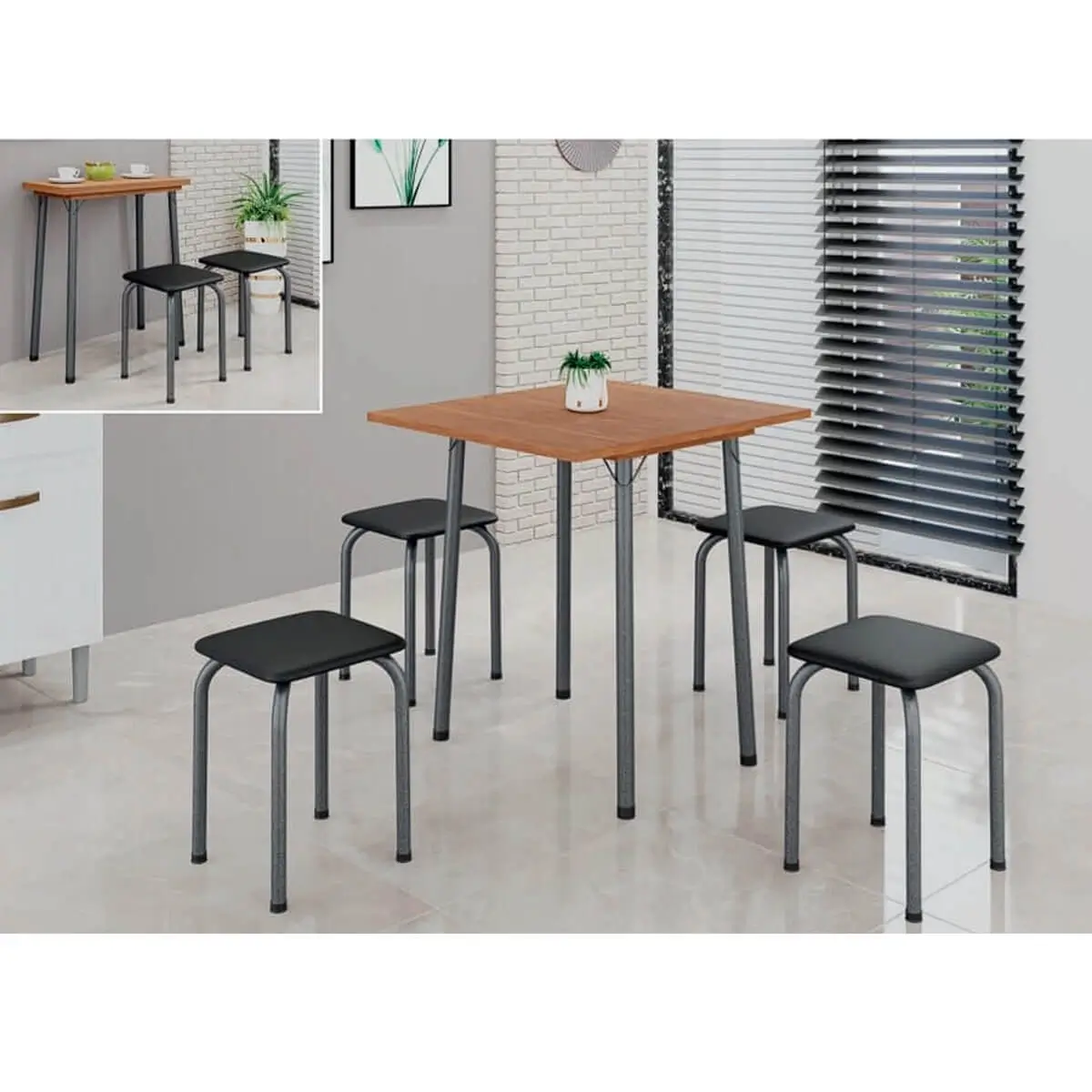 Imagine só: refeições em família, jogos com os amigos, ou simplesmente um espaço extra para trabalhar ou estudar. Com a Mesa Dobrável Luana com 4 Banquetas Imop Cinamomo Martelado Prata, a diversão está garantida! E o melhor de tudo? É super acessível, tornando a decoração do seu lar ainda mais fácil e agradável.
