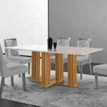 Feita com materiais de alta qualidade, o modelo é resistente e durável, garantindo que você possa desfrutar dela por muitos anos. O vidro na superfície da mesa adiciona um toque moderno e elegante, além de ser fácil de limpar – ótimo para os tempos em que a comida acaba indo para todo lugar, menos para o prato.