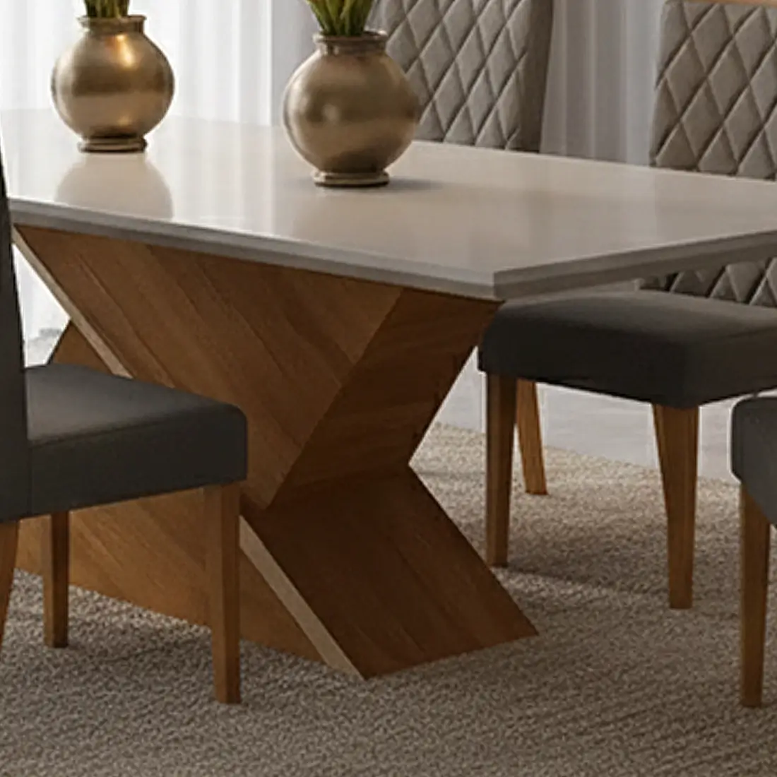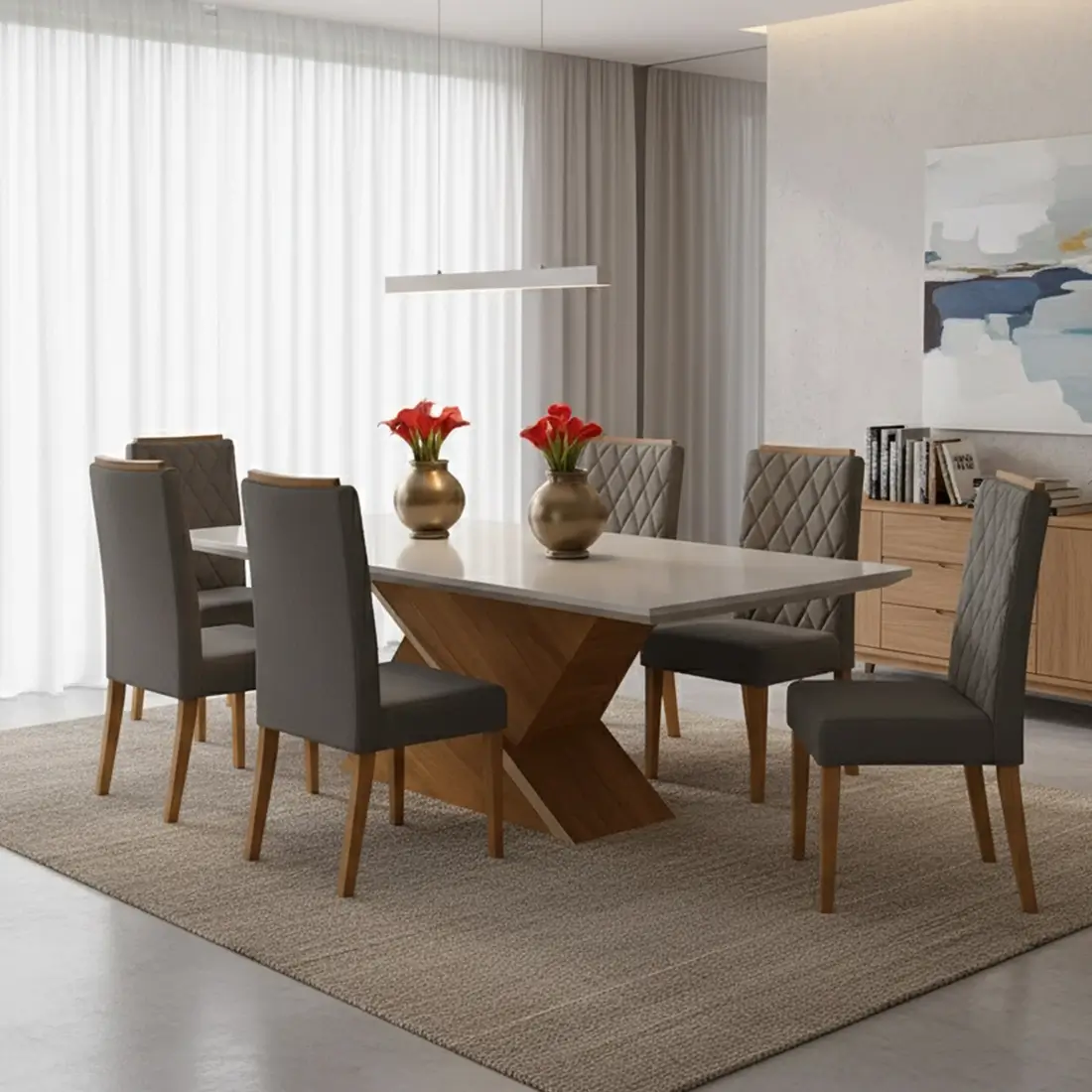 A Mesa Galak se destaca pela sua versatilidade, adaptando-se a diversos estilos de decoração, do clássico ao contemporâneo. Suas linhas limpas e acabamento refinado complementam qualquer ambiente, adicionando um toque de modernidade sem perder a elegância atemporal. A superfície ampla oferece espaço de sobra para dispor os pratos, bebidas e decorações, tornando cada refeição um verdadeiro banquete visual. É a peça chave para quem busca funcionalidade e beleza em um só móvel.