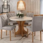 A Mesa Siena 100×100 Redonda Minas Plac é a escolha perfeita para quem busca combinar beleza e praticidade. Com um design moderno e sofisticado, ela se destaca pelas cores Cinamono e Off White, que se adaptam a diferentes estilos de decoração e trazem mais luminosidade ao ambiente.