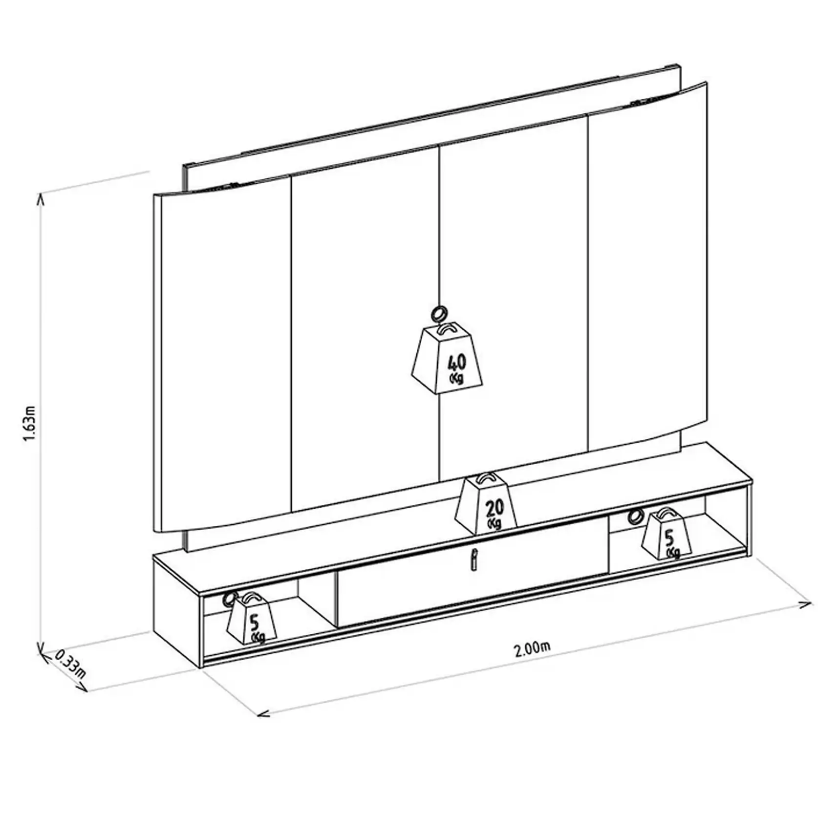 | Dimensões | 33,00 × 200,00 × 163,00 cm |