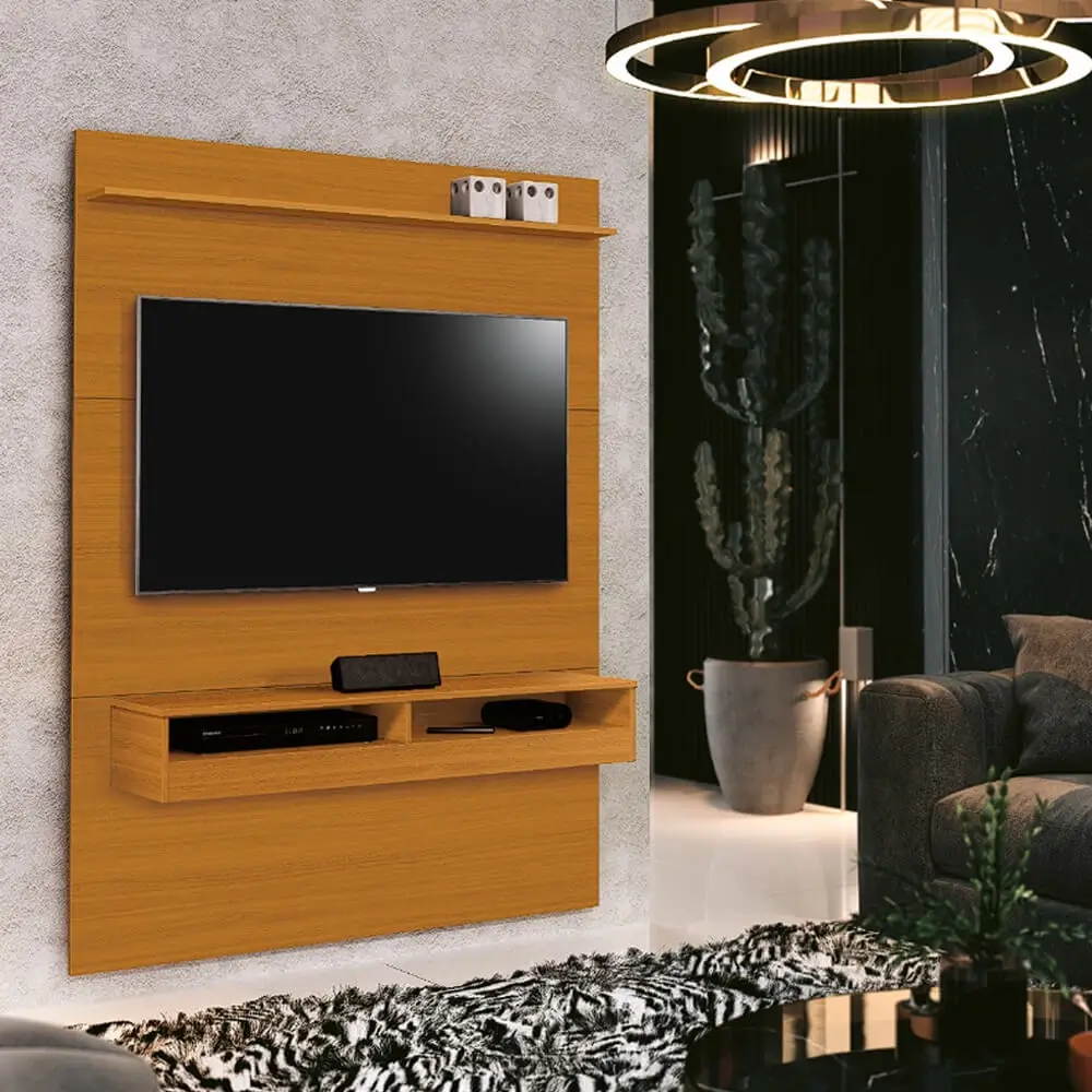 Praticamente um móvel dois em um, pois além de contar com o espaço destinado para seu televisor, ele tem nichos e prateleira para outros objetos, sem prejudicar a mobilidade do local. Sua sala de estar ainda mais charmosa.