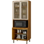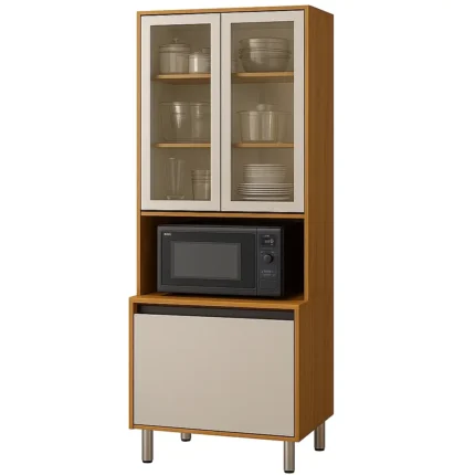 Com três portas, sendo duas em vidro, o Paneleiro Eduarda oferece amplo armazenamento para panelas, utensílios, louças e mantimentos, ajudando a manter tudo organizado e ao alcance das mãos. Sua estrutura é pensada para se adaptar a diferentes estilos de cozinha, desde as mais tradicionais até as contemporâneas.