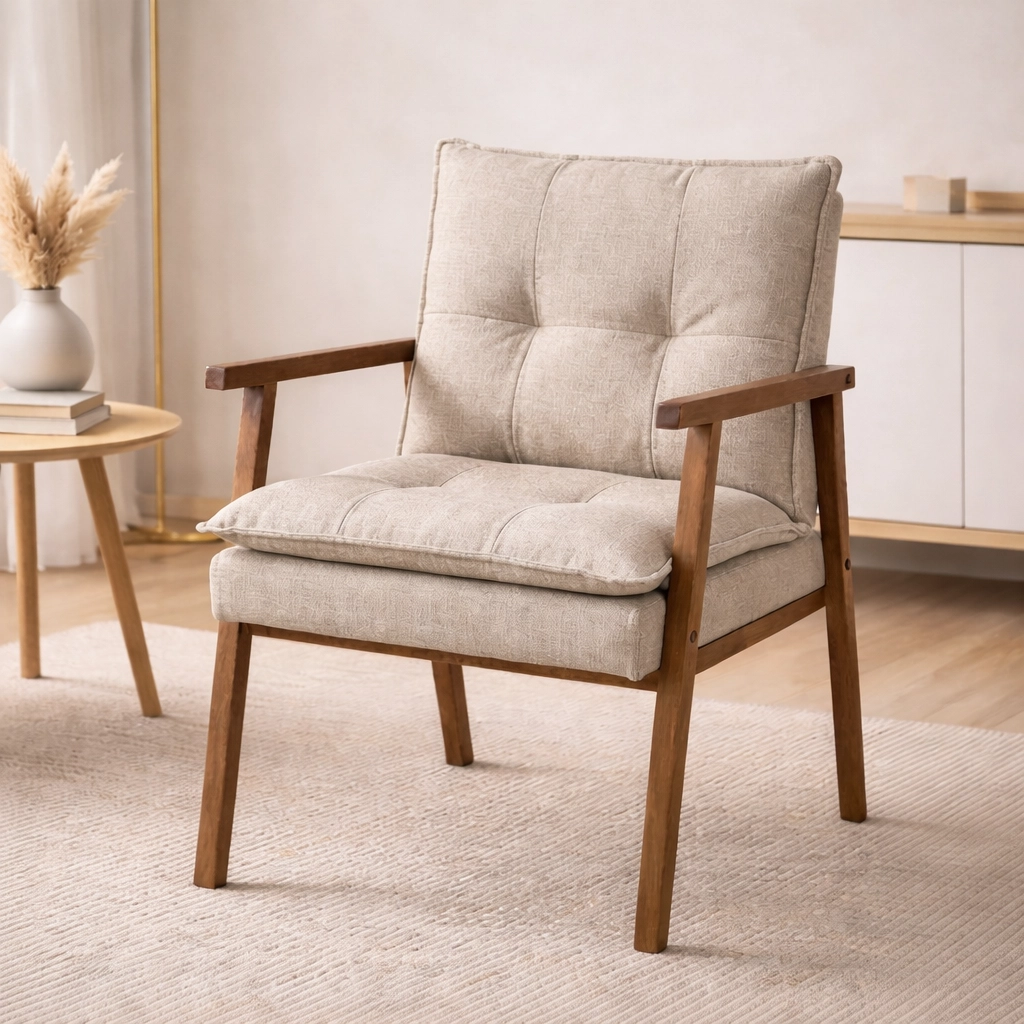 A Poltrona Denise 025 em Linho May Ind é uma peça de destaque que une conforto e estilo com seu design moderno e aconchegante. Revestida em linho, ela proporciona uma elegância sofisticada, elevando a decoração de qualquer ambiente, seja na sala de estar, quarto ou escritório. A estrutura é complementada por pés e braços robustos em madeira que garantem estabilidade e durabilidade, enquanto seu formato ergonômico e o assento macio a tornam o convite perfeito para momentos de relaxamento e leitura.