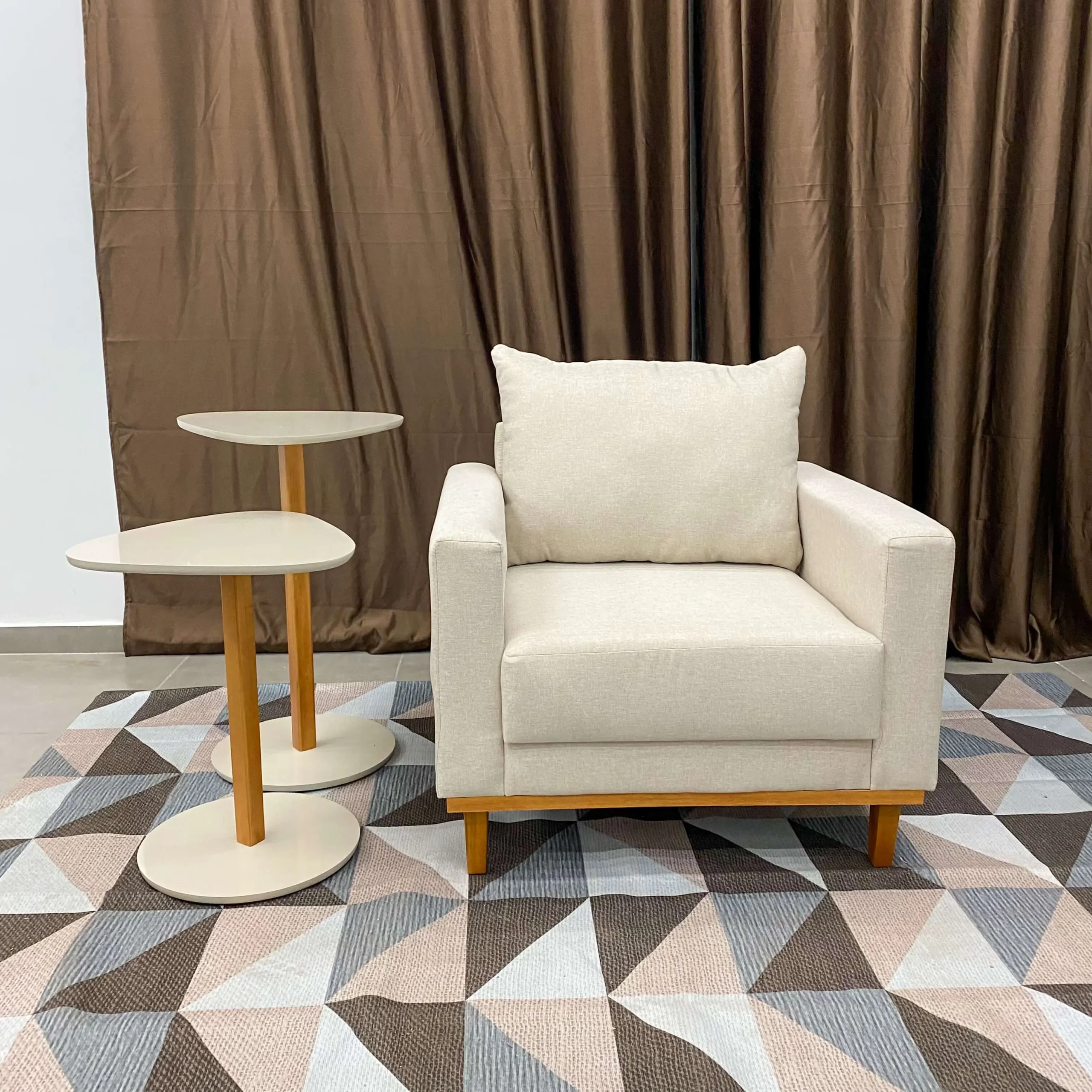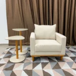 Conforto e Estilo: Com um tecido de linho suave e uma almofada solta, esta poltrona oferece o equilíbrio perfeito entre conforto e elegância. A combinação de cores neutras permite que esta peça se encaixe perfeitamente em qualquer ambiente, adicionando um toque de classe a qualquer espaço.