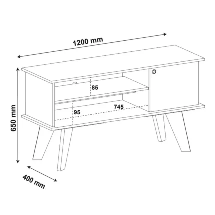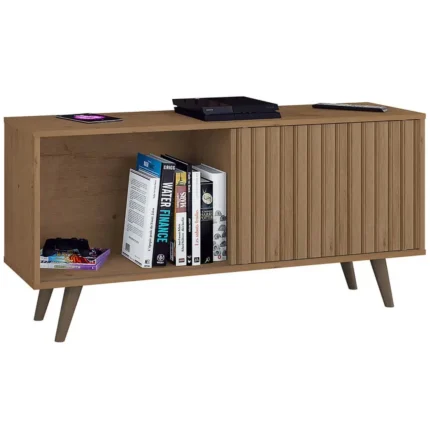 O Rack Aruba apresenta uma porta deslizante que não só confere um visual contemporâneo, mas também permite fácil acesso ao seu equipamento de entretenimento. A cor em adiciona um toque de sofisticação, enquanto a porta deslizante mantém os itens guardados fora de vista, mantendo o seu espaço organizado e arrumado.