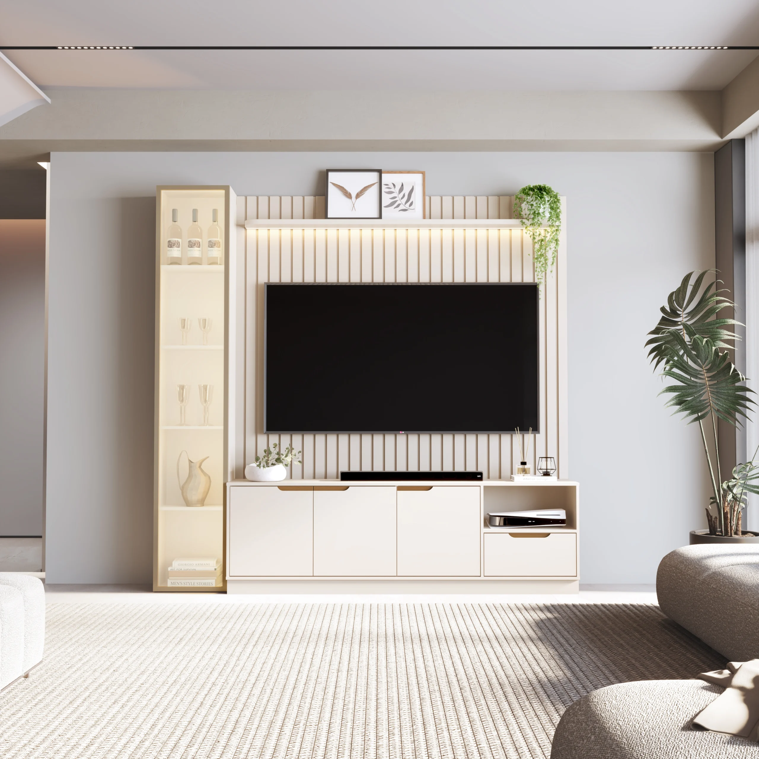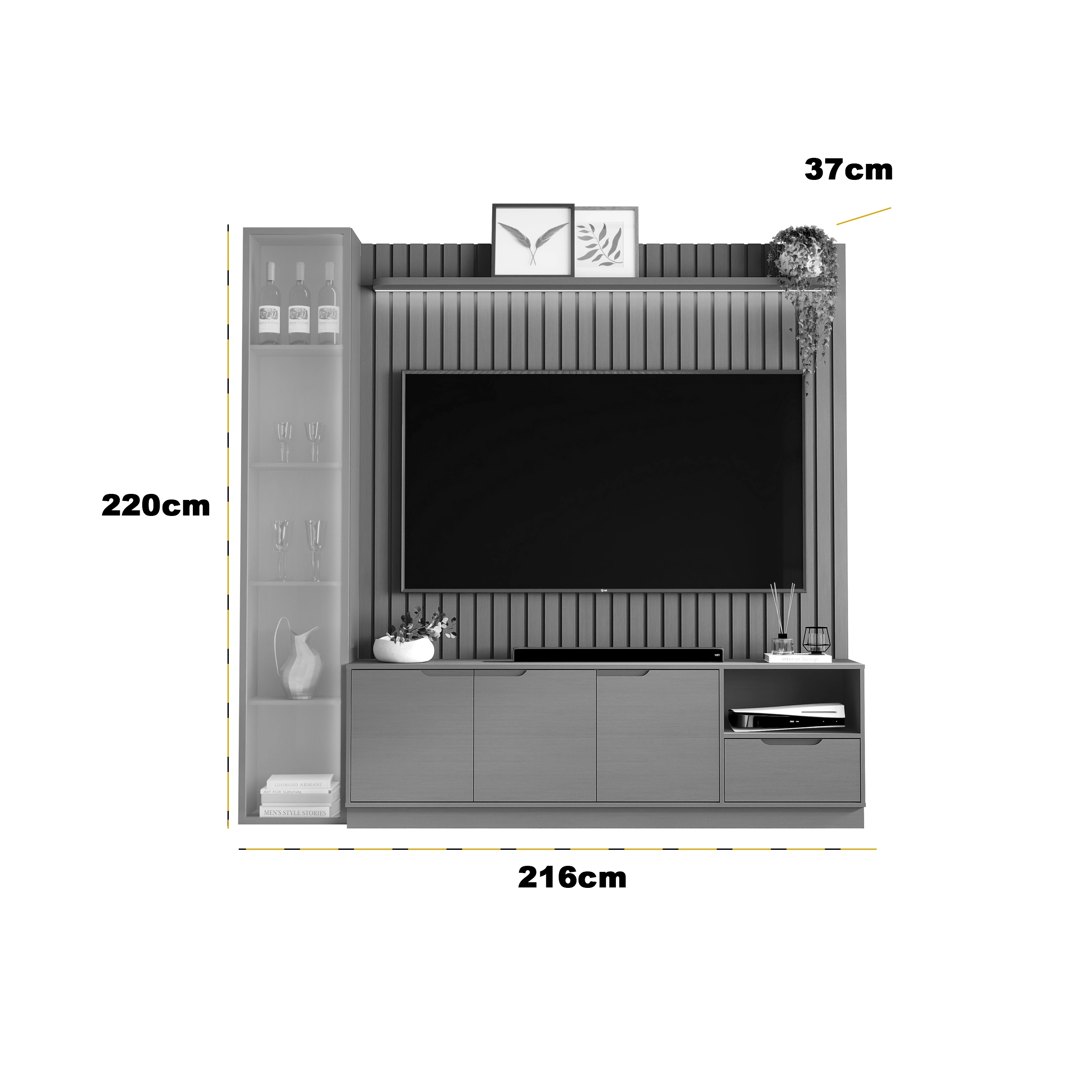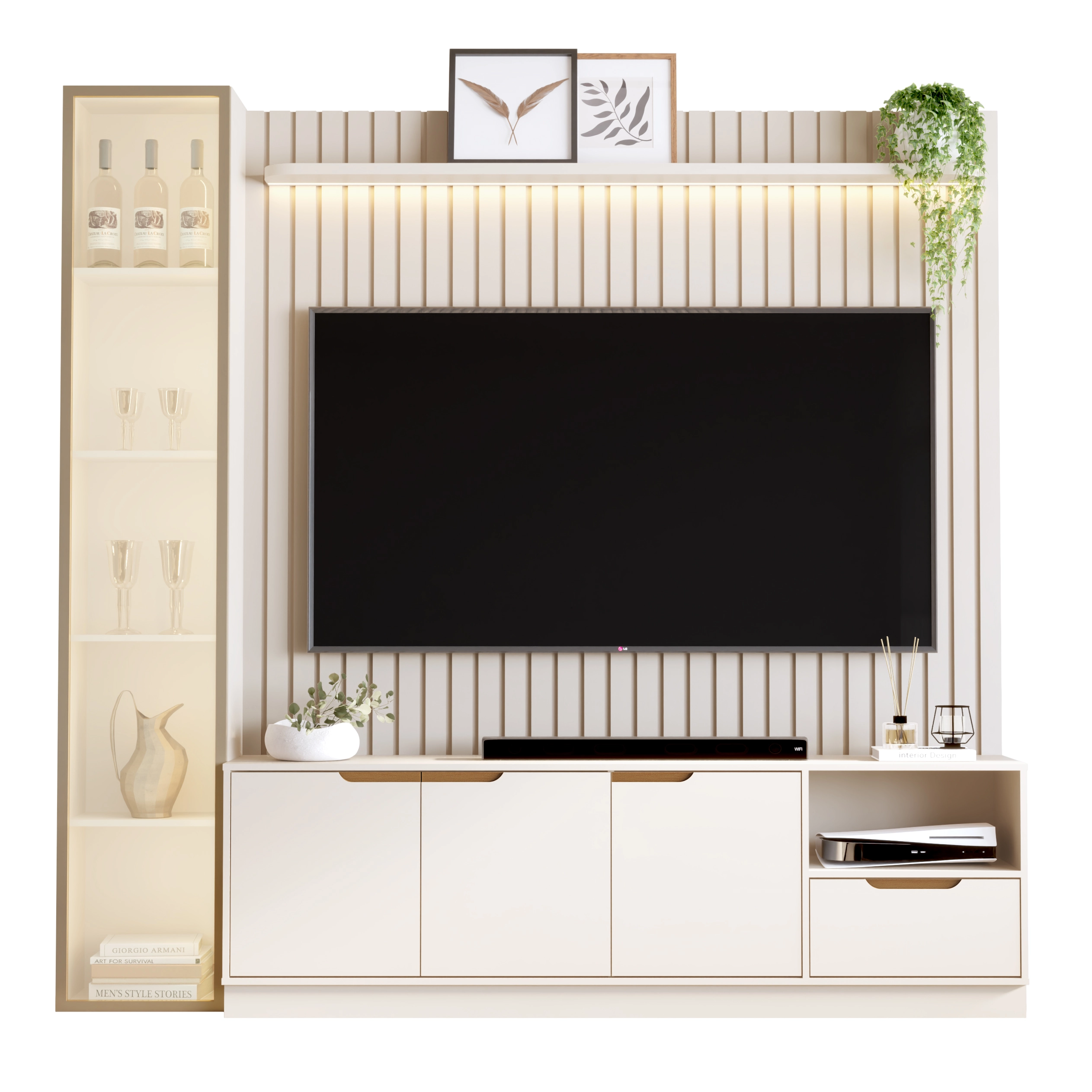 Rack com Painel Tucuma Ripado 180cm com Prateleira 1 Torre e LED 4 Portas 1 Gaveta JB Bechara
