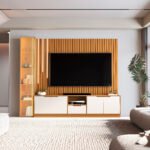 Seja o primeiro a avaliar “Rack com Painel Tucuma Ripado 230cm Sem Prateleira 1 Torre com Led Cascata 5 Portas 1 Gaveta Jb Bechara”