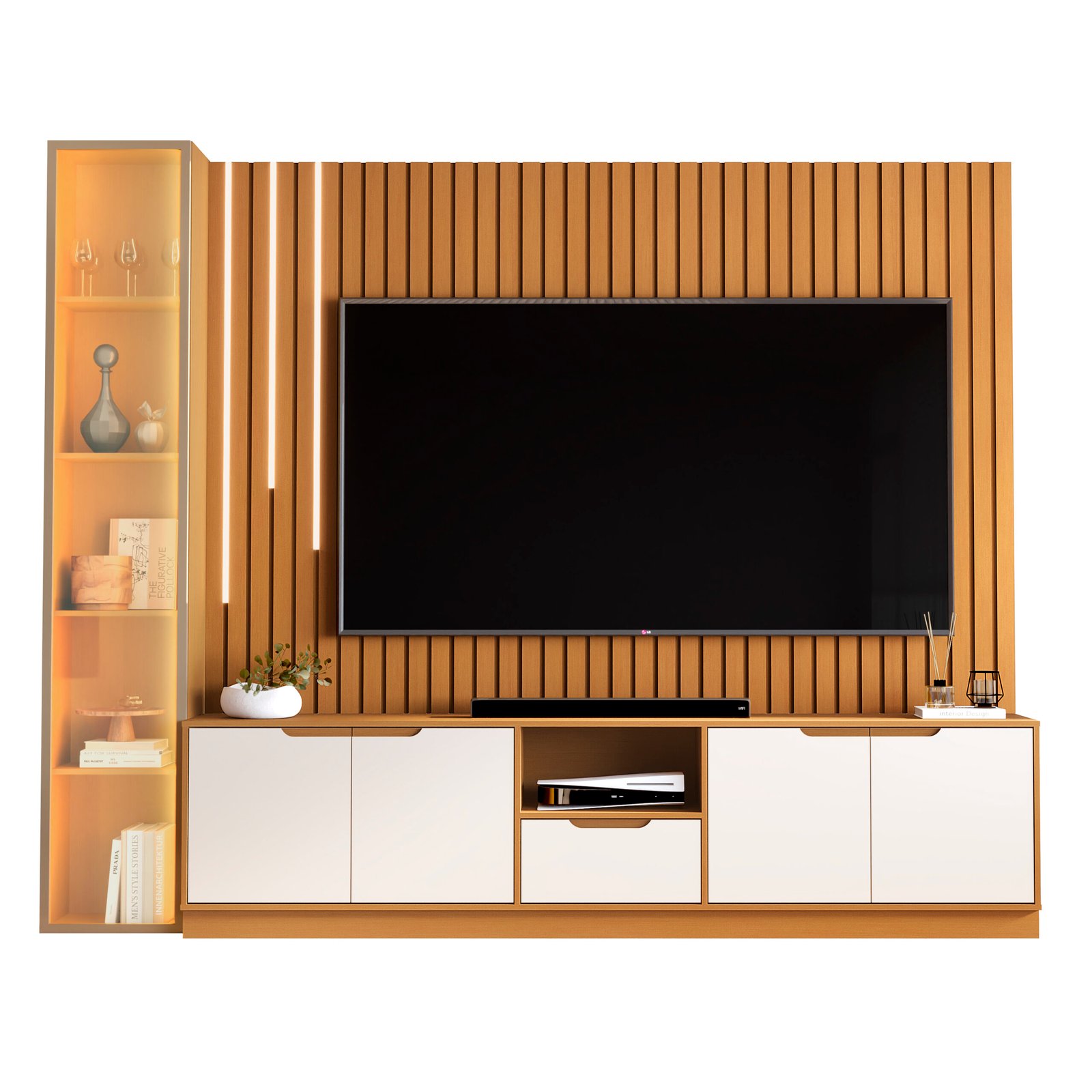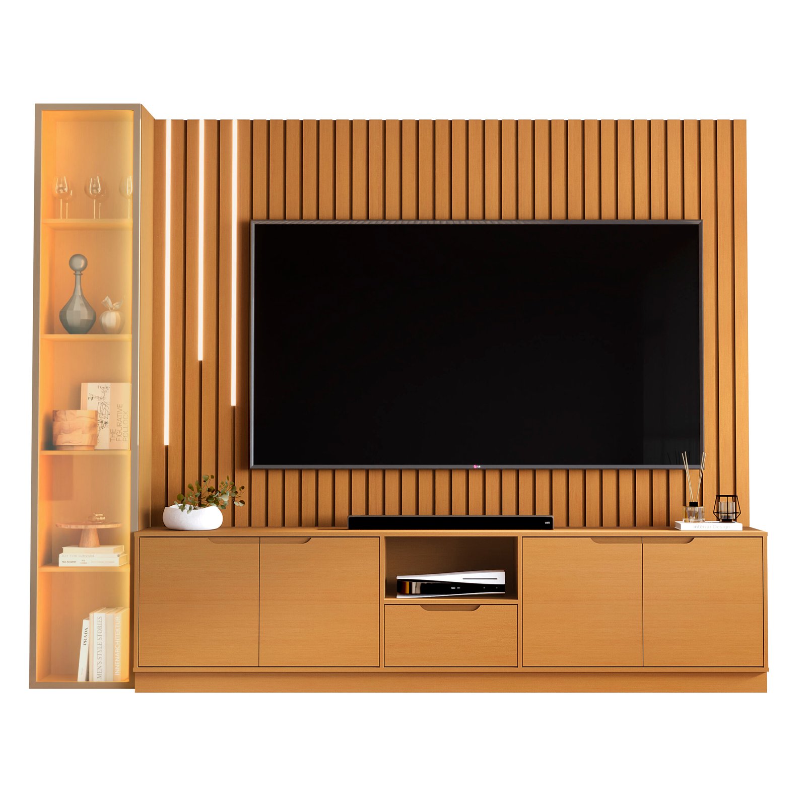 Rack com Painel Tucuma Ripado 230cm sem Prateleira 1 Torre com LED Cascata 5 Portas 1 Gaveta JB Bechara