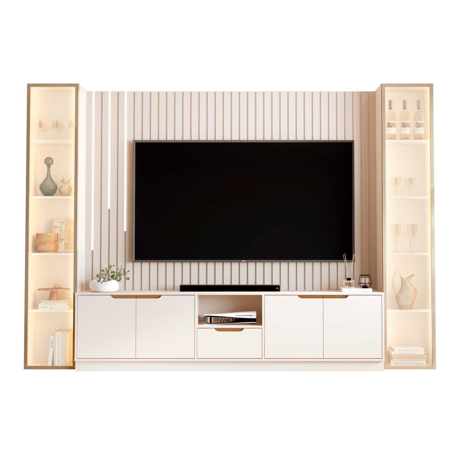 Rack com Painel Tucuma Ripado 230cm sem Prateleira 2 Torres com LED Cascata 6 Portas 1 Gaveta JB Bechara