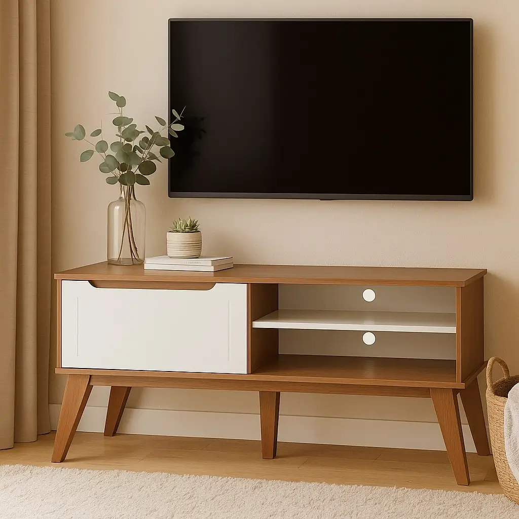 O Rack Lotus para TV até 60 Polegadas com 1 Porta Artely é a escolha perfeita para quem busca combinar design moderno, praticidade e organização na sala de estar. Ideal para TVs de até 60 polegadas, este rack se destaca pelo seu estilo retrô e acabamento impecável, que adicionam um toque de elegância a qualquer ambiente.