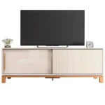 O móvel conta com duas portas que escondem compartimentos internos espaçosos, ideais para armazenar eletrônicos, cabos, controles e objetos diversos, mantendo o ambiente sempre organizado. Além disso, os nichos abertos facilitam a disposição de aparelhos como consoles e receptores, enquanto a superfície ampla permite dispor itens decorativos com criatividade.