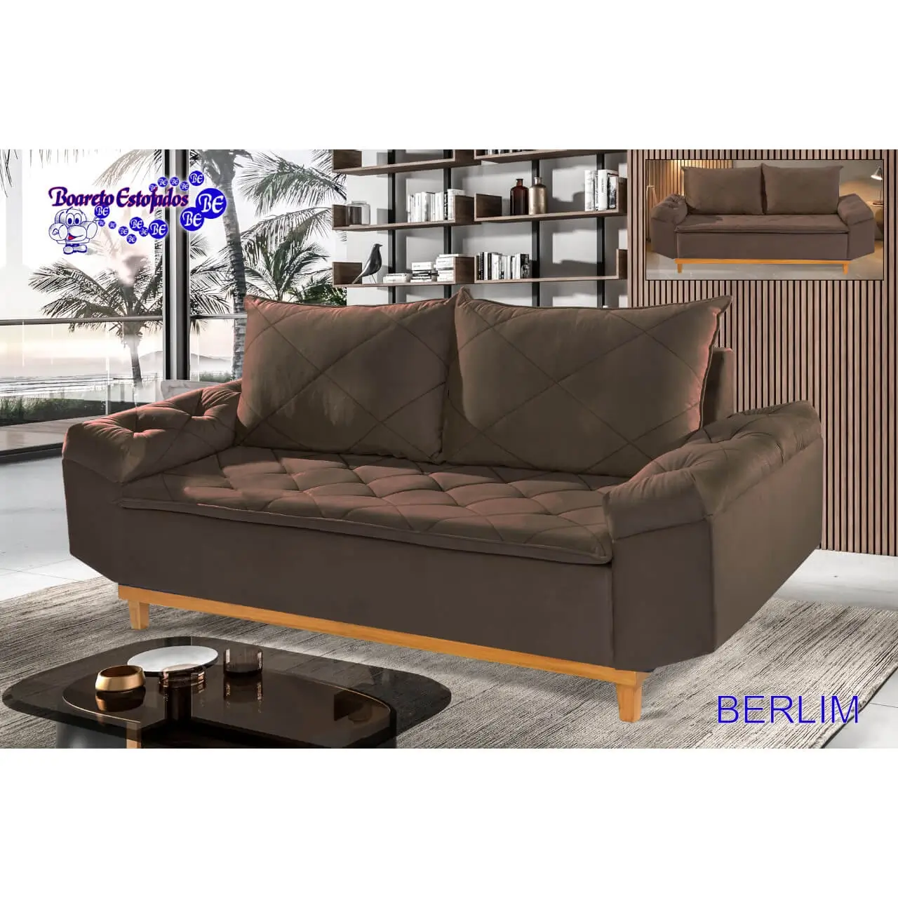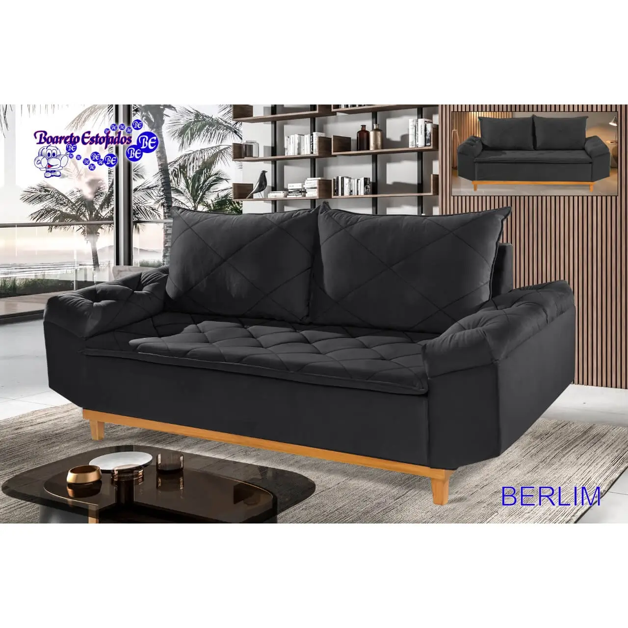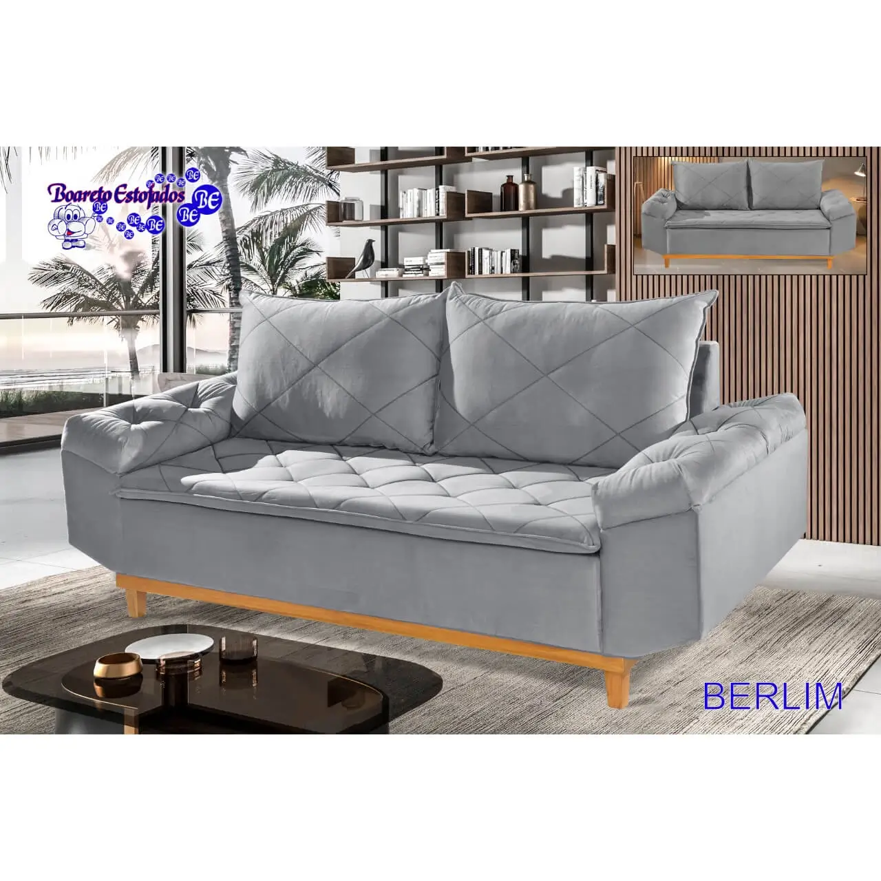 Sofá Berlim 3 Lugares Tecido Veludo 200cm Boareto