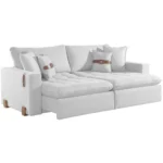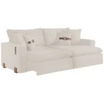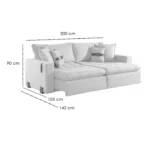 Com 200cm de puro charme, este sofá é revestido com tecido de linho, o que garante durabilidade e um toque suave. Além disso, a sua estrutura robusta e de alta qualidade garante uma longa vida útil para este móvel.