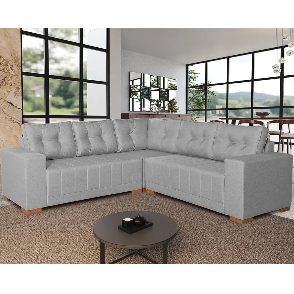 Sofá de Canto Bonfim 7 Lugares 236cm X 236cm Tecido Linho Lufer