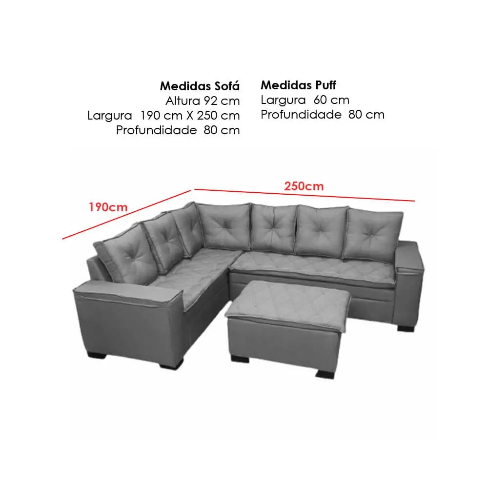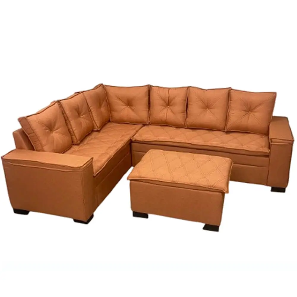 Imagine só: após um dia cansativo, você chega em casa e se joga no seu sofá de canto, esticando as pernas no puff, e ainda por cima com almofadas soltas para garantir o máximo conforto. É o paraíso na Terra, não é mesmo?