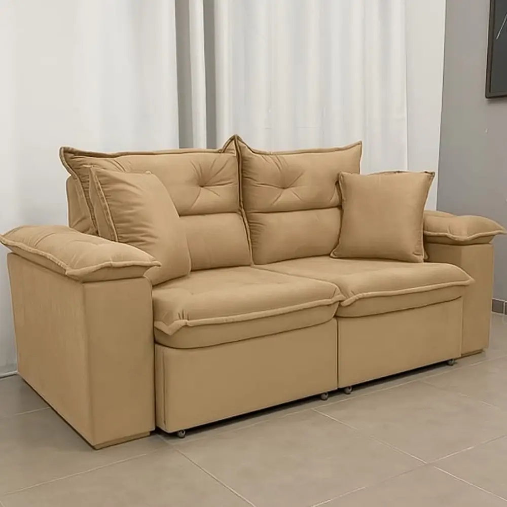 O Sofá Ferrari 3 Lugares Retrátil e Reclinável Tecido Veludo 200cm L3 Estofados é a escolha ideal para quem busca conforto e funcionalidade em um só móvel. Revestido em veludo, ele proporciona um toque macio e um visual sofisticado para a sala de estar. Seus assentos retráteis com espuma D-26 e encostos reclináveis em cinco posições, preenchidos com fibra siliconada, garantem o máximo de conforto para relaxar, assistir a um filme ou ler um livro.