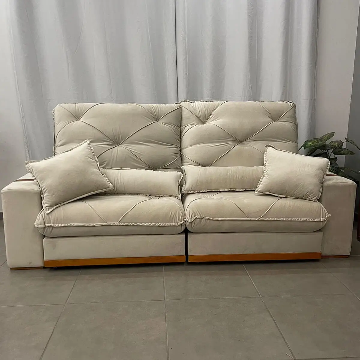 O Sofá Isabela não só é espaçoso, mas também super versátil! Com a opção retrátil e reclinável, você pode se esparramar confortavelmente depois de um longo dia de trabalho, assistir a um filminho com a família, ou até mesmo tirar uma soneca tranquilamente.