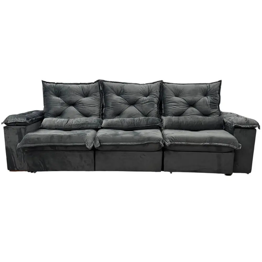 Com 270cm de comprimento, este sofá oferece amplo espaço para acomodar confortavelmente até mesmo as visitas mais animadas. E com a opção retrátil e reclinável, você pode encontrar a posição perfeita para assistir TV, ler um livro ou simplesmente relaxar.