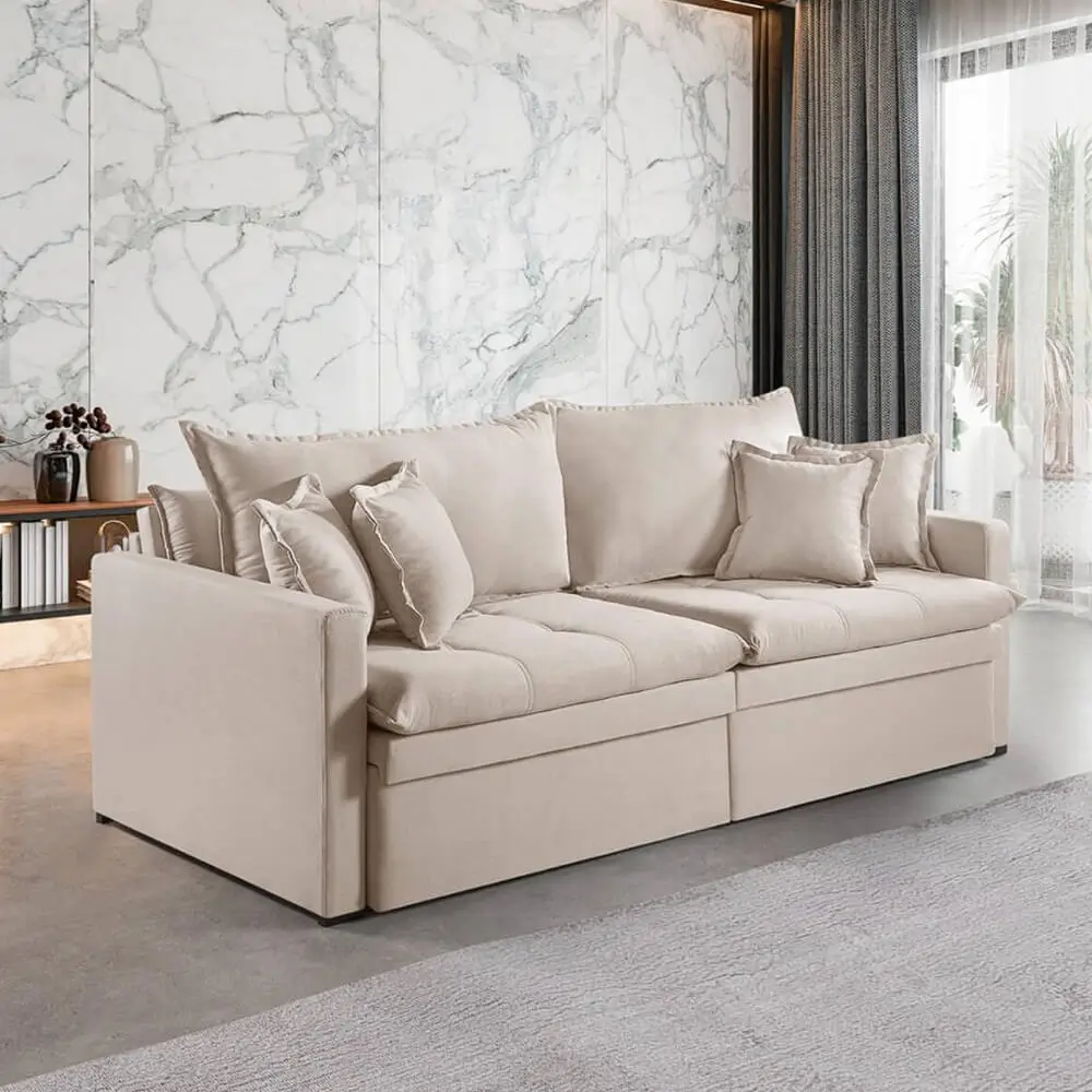 O design retrátil oferece a versatilidade que você precisa para criar o ambiente perfeito para assistir a filmes ou receber visitas. Seja para assistir TV ou simplesmente relaxar, este sofá é uma combinação perfeita de elegância e funcionalidade.