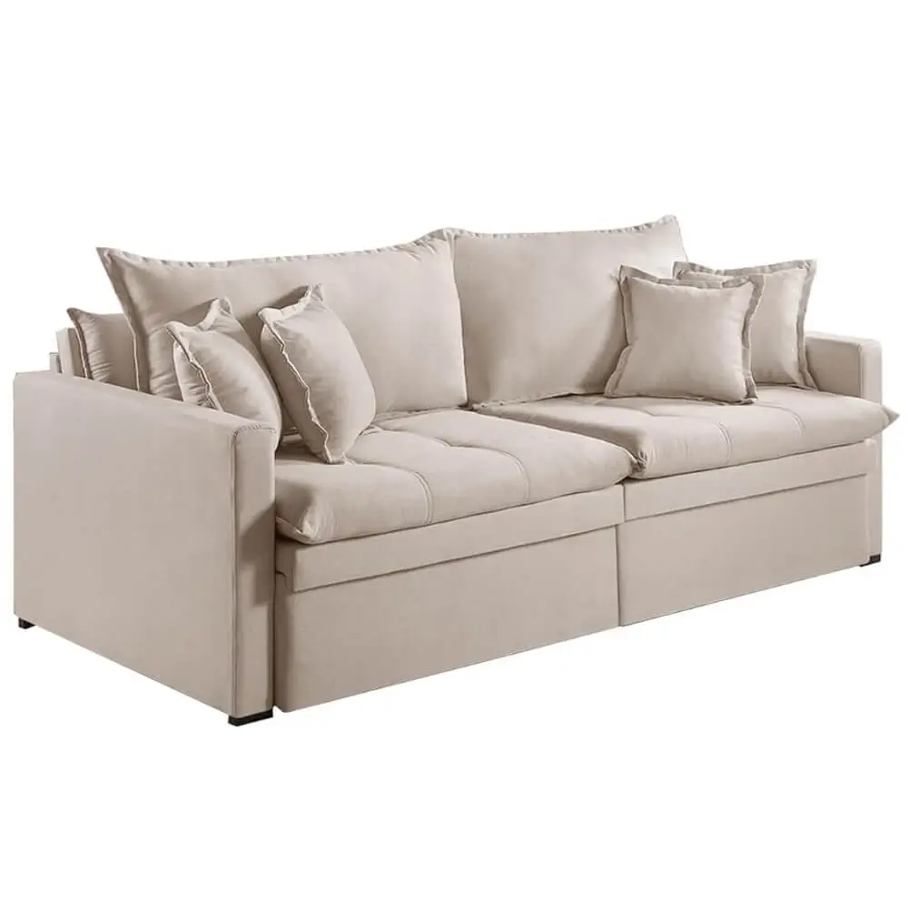 Sofá Ravena 220cm Retrátil com Baú e Almofadas Soltas 4 Lugares Tecido Linho Arpan