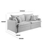 O tecido de linho confere um toque de classe e durabilidade, garantindo que seu novo sofá não só seja confortável, mas também resistente. As almofadas soltas oferecem ainda mais conforto e praticidade, permitindo que você possa ajustar o sofá de acordo com as suas preferências. Além disso, o baú integrado oferece um espaço adicional para armazenamento.